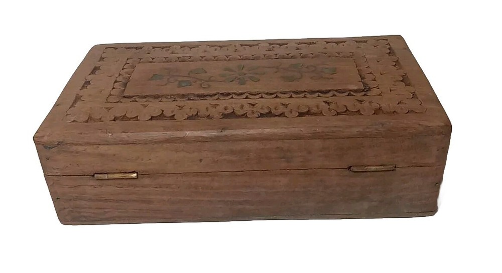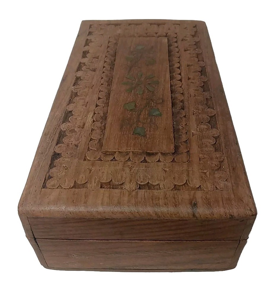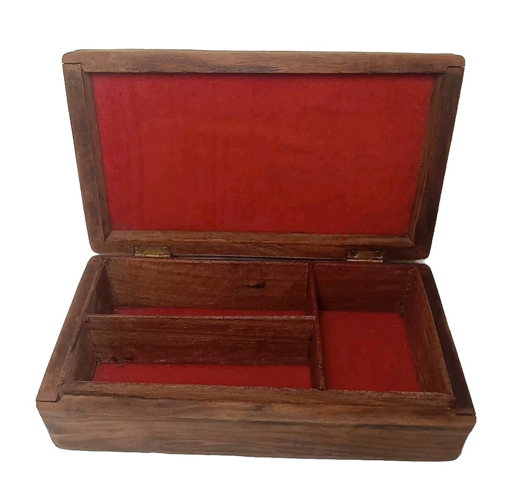 Original/Reproduction: Original Type: Trinket Box Number in Pack: 1 Room: Any Room Time Period Manufactured: 1970-1979 Subject: Flower Style: Bohemian Features: Carvings, With Lid Shape: Rectangle Collection: Keepsake Boxes Occasion: All Occasions Finish: Wood-Finished Department: Adults, Teens, Girls Color: Brown Brand: Unbranded Country/Region of Manufacture: India Theme: Art, Novelty Pattern: Floral Material: Wood Size: Small