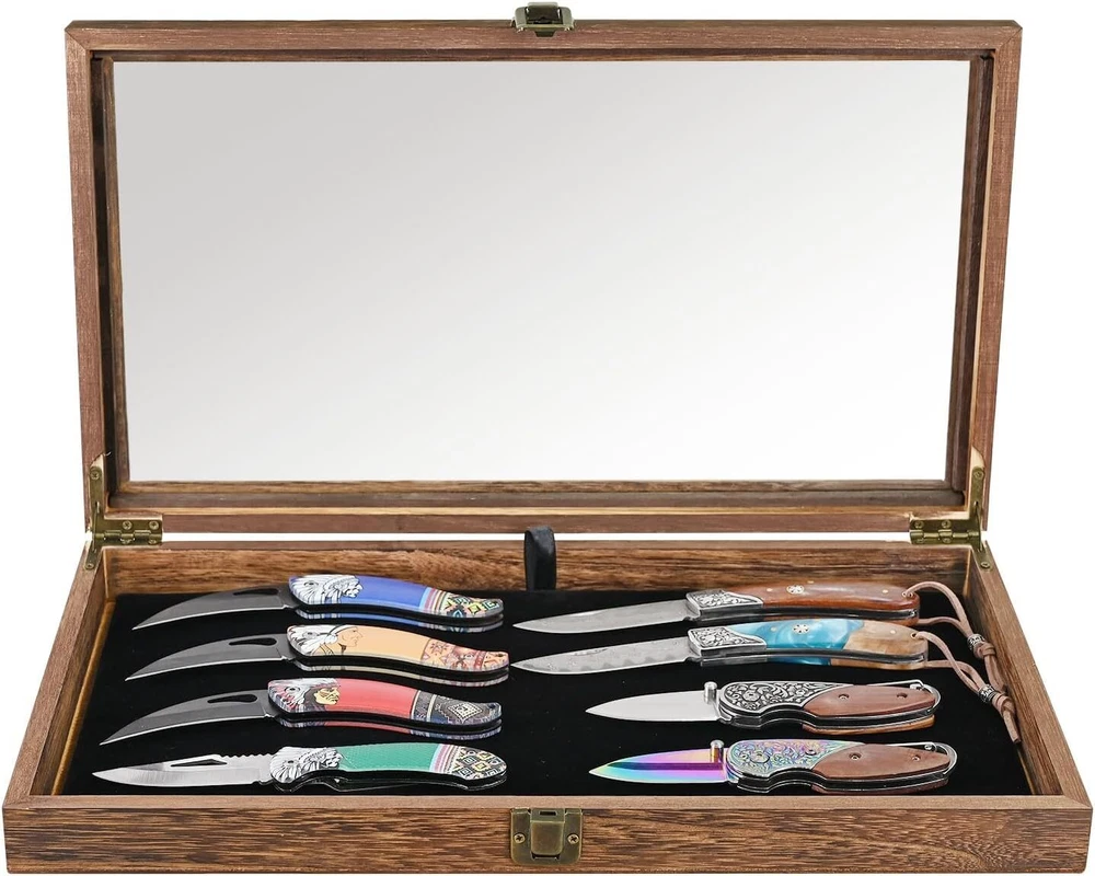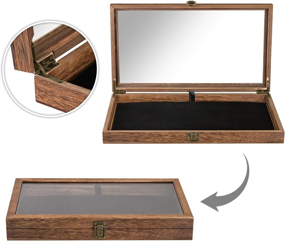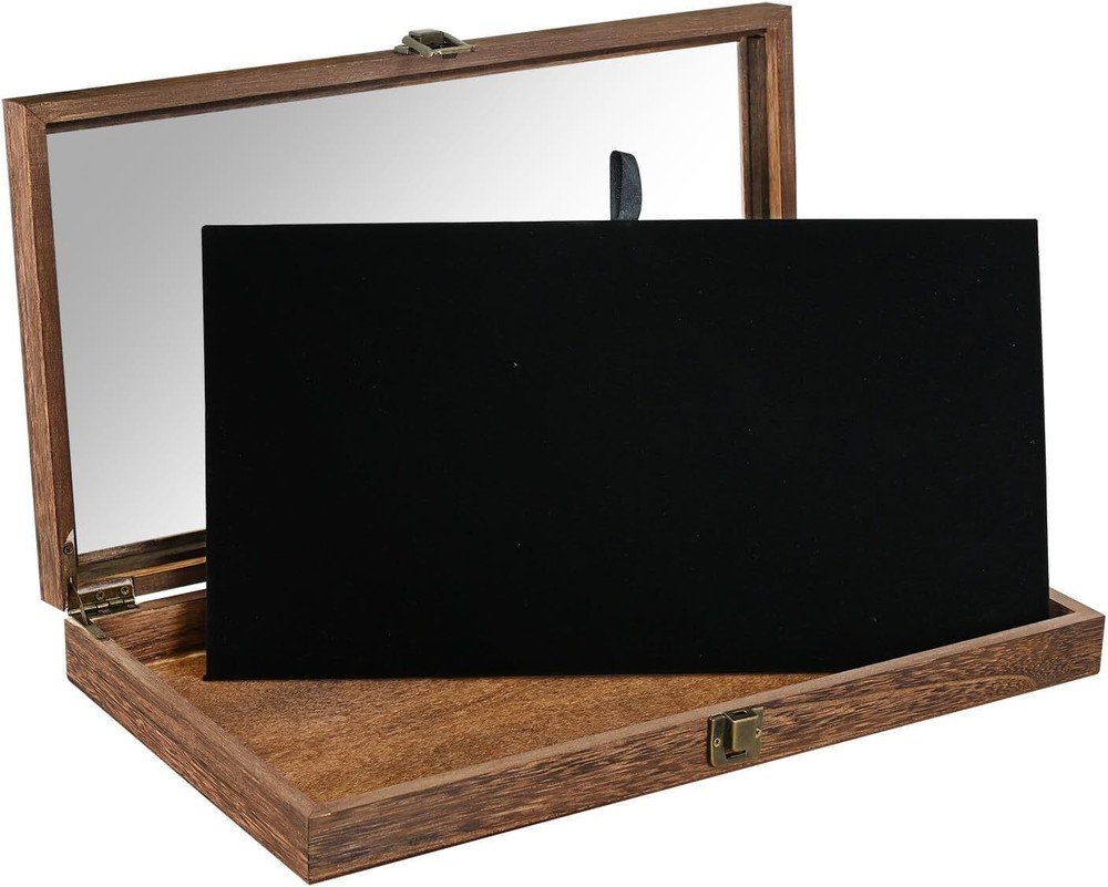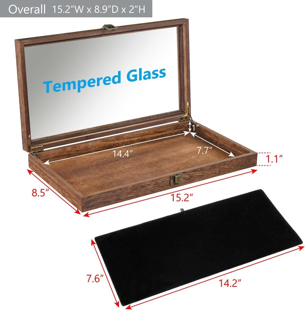 Menu Other Items Feedbacks About Us Contact Us Add To Favorites Crafted Wooden Jewelry Display Case Tempered Glass Hinge Lid, Removable Black Luxurious Velvet Pad Showcasing Jewelry, Pocket Knife Display Case. Perfect for Rocks, Challenge Coins NATURAL WOOD DISPLAY CASE WITH HINGE LID: This box features a securely attached lid with hinge cylinders and snap locks for added security. It's ideal for organizing small items like earrings, rings, coins, pins, bracelets, necklaces, brooches, medals, and other jewelry POCKET KNIFE DISPLAY CASE: The display case features a durable tempered glass lid that offers a pristine view of your collection, allowing you to easily admire and showcase your knives REMOVABLE BLACK VELVET PAD JEWELRY DISPLAY CASES: The case is designed with versatility in mind. It comes with removable pads that can be used for separate displays or placed into the case for safekeeping. Crafted from natural wood, the case features a strong metal clasp for security and includes a luxurious black velvet pad, adding a touch of elegance to its durable design DISPLAY CASES FOR COLLECTIBLE: We provide top-notch display and organization. With over 20 years of experience in the USA, we've gained insight into our customers' needs, allowing us to customize our services for you! MATERIAL & SIZE - Wood; overall: 15.2''W x 8.9''D x 2''H; removable pad dimension: 14.2“W X 7.6”D Accessories are NOT included Product Description Wooden Jewelry Display Case Overall: 15.2''W x 8.9''D x 2''H The display case features a durable tempered glass lid that offers a pristine view of your collection It comes with removable pads that can be used for separate displays or placed into the case for safekeeping. Metal Hinge Construction Elevated with a metal hinge, enhancing both style and structural durability. Removable Velvet Pad Protect your collection from scratches and damage while keeping them neatly organized and in place. Classic & Elegant Featuring a clear, tempered glass lid, the display case allows you to showcase your collection beautifully while keeping them safe from dust and damage. Item Specification Item model number WD8386BR+93-1 Style Rustic Number of Items 1 Closure Type Latch Warranty Type No Warranty Batteries Included? No Jewelry Storage Type Jewelry Case Batteries Required? No Number of Compartments 1 Special Feature Durable , Top Tempered Glass Lid , Rustic Metal Clasp Product Dimensions 8.9"D x 15.2"W x 2"H Material Wood Finish Type Rustic Item Package Quantity 1 Item Weight 2.13 pounds Finish Rustic Occasion Wedding, Christmas, Birthday Special Features Durable , Top Tempered Glass Lid , Rustic Metal Clasp Target Audience All Part Number WD8386BR+93-1 Mounting Type Table Top Color Brown with Black Interior Inner Material Velvet Shape Rectangular Recommended Uses For Product All Dimensions Shipping Returns Additional Info Product Dimensions: 15.2 "h x 8.9 "h x 2.0 "h. Weight: 2.13 lb Fast shipping is very important for us. Our standard shipping service is FREE. Your order will be shipped within 1-3 business days upon full payment received. Most items are delivered within 3-5 business days, however, please allow 3-10 business days. We are shipping only to USA. We only ship to the confirmed Paypal address. We reserve the right to cancel any order for any reason at any time. We are not responsible for undeliverable addresses. We offer a 30 day return policy from checkout winning date. Your satisfaction is guaranteed! If for any reason you are unhappy with your item, just return it within 30 days for a full refund, minus shipping cost. Please contact us prior to initiating a return so that we can issue you a refund authorization. Items defective upon receipt must be packaged in their retail packaging as if new and returned with a detailed description of the problem. Return shipping fees are not refundable. We reserve the right to decline any returns if the above guidelines are not followed. All of our items, unless otherwise stated, will only run on 120 volts. Please check to make sure your country complies with these specifications. If you have a problem or question regarding your transaction please contact us before leaving any type of feedback. We will work with you to resolve any problem you may have.
