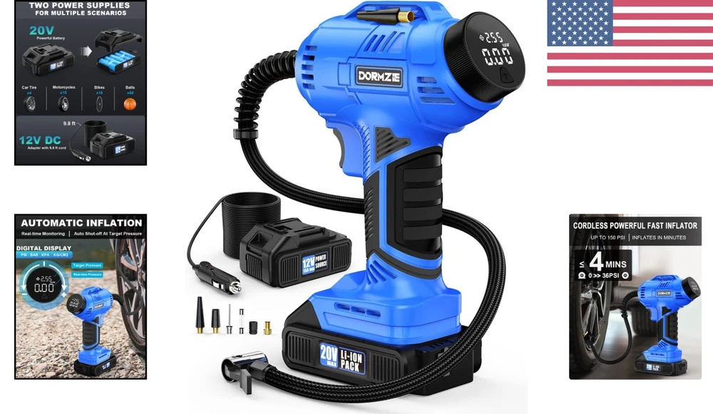 Handheld Air Pump 150 PSI - Rechargeable Tire Inflator for Cars, Bikes, & Balls ‹ › ‹ › ‹ › ‹ › ‹ › ‹ › ‹ › ‹ › Handheld Air Pump 150 PSI -Rechargeable Tire Inflator for Cars, Bikes, & Balls Features: Powerful 20V rechargeable Li-ion battery for quick and efficient tire inflation. Constructed with a robust metal cylinder and gear, operating with 2x faster inflation speed. Maximum pressure of 150 PSI; works continuously for up to 20 minutes. Auto shut off feature upon reaching target pressure to prevent overinflation. Clear Digital Pressure Gauge with 4 unit switches (BAR, KPA, PSI, KG/CM2) for easy monitoring. Includes a dual power solution – a 20V battery and a 12V car power adapter. Versatile for various inflation needs: cars, motorcycles, bicycles, sports equipment, and more. Compact and portable design for easy storage in your vehicle. Benefits: Enjoy the freedom of cordless inflation with enhanced power and efficiency. Set your desired air pressure effortlessly and accurately every time. Versatile usage keeps you prepared for any inflation task while on the go. Compact design ensures you can easily store it in your vehicle without hassle. Comes with all necessary accessories for your convenience. Why choose our Handheld Air Pump? Experience the convenience and efficiency of our Handheld Air Pump with a maximum pressure of 150 PSI, equipped with a high-performance 20V rechargeable battery for portability. Designed for quick inflation, this tire inflator ensures you're ready for any pump job, whether it's your car, bike, or balls. The auto shut-off feature, digital gauge, and dual power options empower you with peace of mind and precision. Don't let deflated tires or sports equipment hold you back—choose our Handheld Air Pump today and enjoy worry-free inflation wherever life takes you! Shipping Free & Fast Shipping - We offer free shipping to most of the USA with a normal delivery time of 3-7 days. However, due to the current situation, additional delivery time (up to 3 weeks) may be required for some items. Alternative Carriers - We may use alternative carriers (e.g. USPS, FedEx, UPS, etc.) to ensure your package arrives safely and on time. Due to the use of multiple carriers, we are unable to provide a tracking number automatically. Handling Time - Orders are processed and shipped within 1-2 business days of receiving cleared payment. Shipping Restrictions - Shipping to Alaska, Hawaii, Puerto Rico, Guam, and other US territories may incur shipping charges or delivery restrictions. Please contact us before ordering, or your order can be refunded/cancelled. State Restrictions - There may be restrictions based on your state of purchase. For example, certain items may not be shipped to California due to state regulations. Contact for Tracking Updates - If you require tracking updates or have any concerns about the delivery of your order, please feel free to contact us, and we will be happy to assist you. Return 30-Day Hassle-Free Returns - We want you to be completely satisfied with your purchase. If you are not, you can return the item within 30 days of receiving it for a full refund or exchange. Easy Return Process - To start a return, simply contact us and we will provide you with a prepaid return shipping label and detailed instructions. Restocking Fee - There are no restocking fees for returns. However, the buyer is responsible for return shipping costs if the return is not due to a seller's error. Refund Processing Time - Refunds will be processed within 5 business days of receiving the returned item in its original condition. Payment We accept all major credit cards, PayPal, and Apple Pay for your convenience. Your payment information is secure and encrypted to ensure a safe and seamless transaction. Please complete your payment within 3 days of purchase to avoid any delays in shipping. Feedback Your feedback is extremely important to us. We strive to provide the best products and customer service possible. If you are satisfied with your purchase, please take a moment to leave us a positive review. If you have any concerns or issues with your order, please contact us before leaving negative feedback. We are committed to resolving any problems and ensuring your satisfaction. Contact Us If you have any questions or concerns, please feel free to reach out to our customer support team. You can contact us through the eBay messaging system. We are available Monday to Friday, 9:00 am to 5:00 pm EST, and we will do our best to respond to your inquiry within 24 hours. Buy it now and enjoy a pleasant shopping experience! UPC: Not Set Model: Cordless Tire Inflator Item Width: Cordless Tire Inflator Item Length: Cordless Tire Inflator Item Height: Cordless Tire Inflator Item Diameter: Not Set Item Weight: 3.34 lb Unit Quantity: 1 Set Includes: Not Set Brand: Unbranded Type: Portable Air Compressor Portability: Portable Voltage: 20 V Power Source: Battery Powered Maximum Working Pressure: 150 Psi Tank Capacity: Not Set Lubrication Type: Not Set Horse Power: Not Set Tank Material: Not Set Flow Rate: Not Set MPN: Not Set Color: Blue Country/Region of Manufacture: Not Set Manufacturer Warranty: Not Set Unit Type: lb