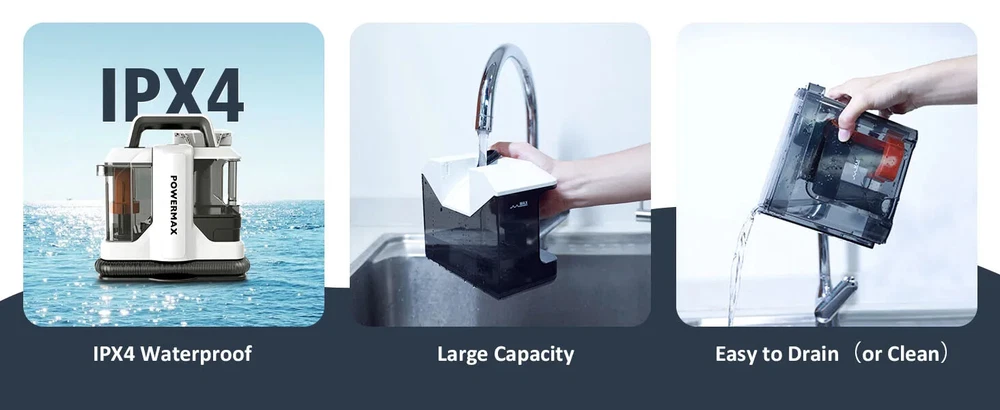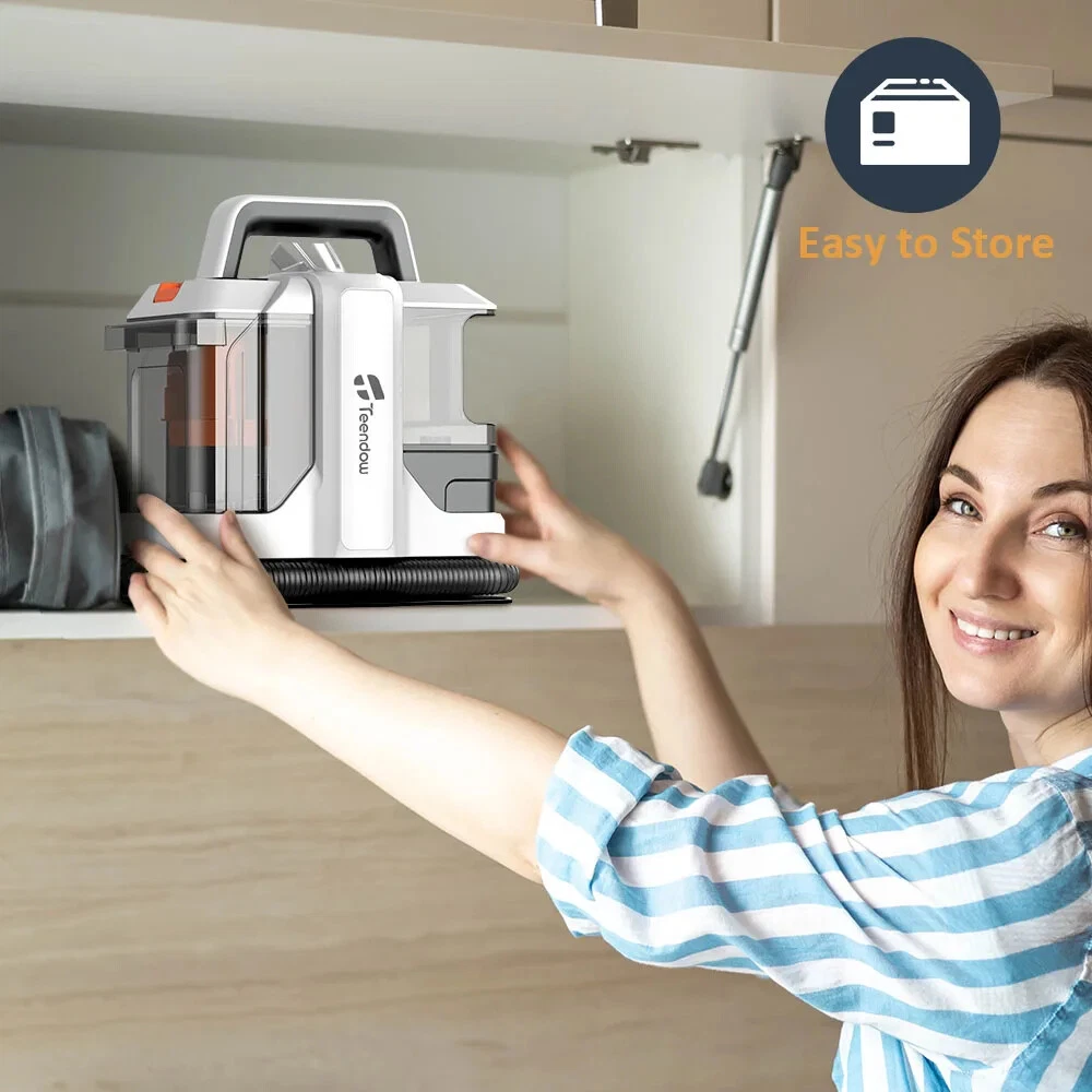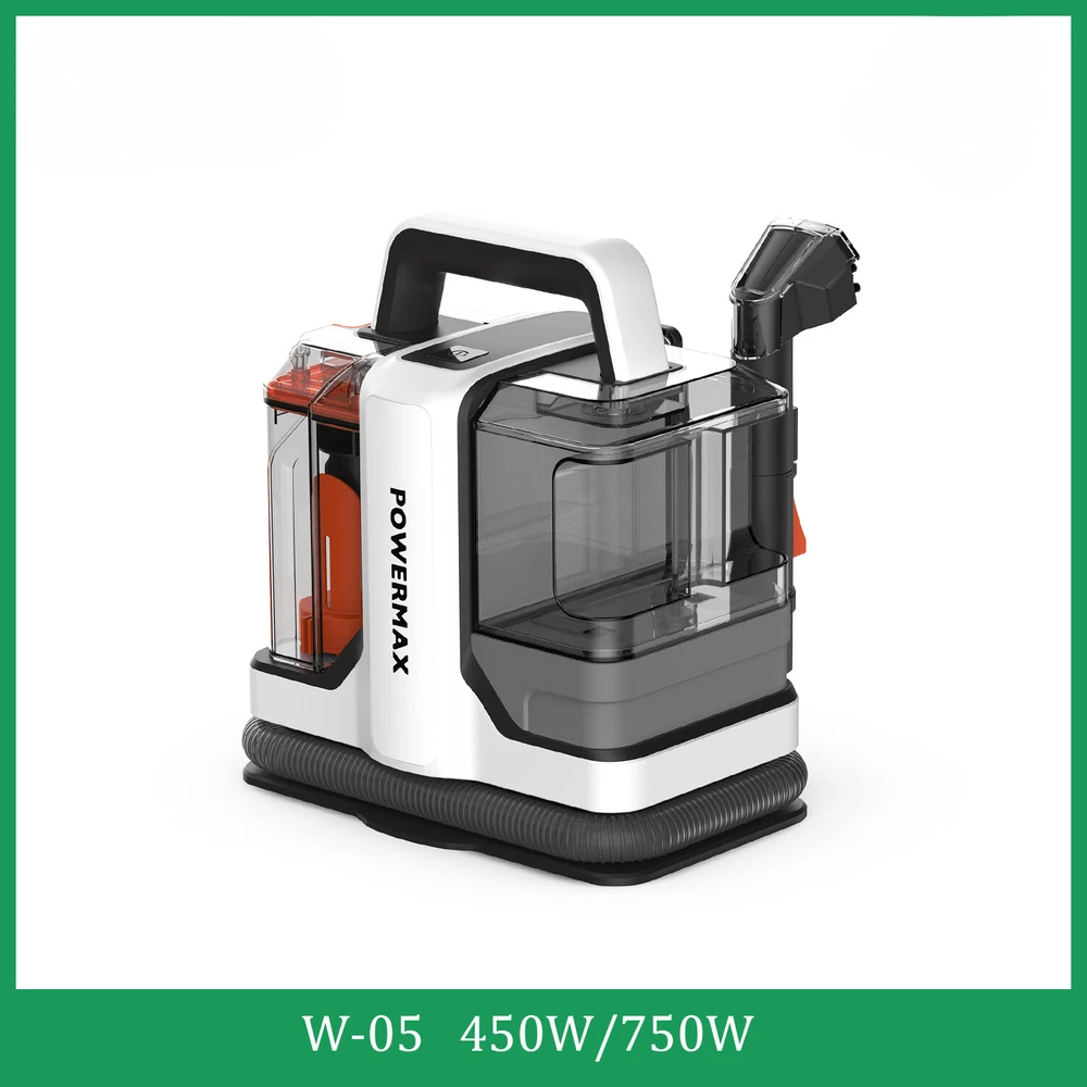 Spot Cleaner 15Kpa 450/750W Handheld Carpet Cleaner Vacuum Cleaner Spray Suction Integrated Machine Clean Machine Stop Working without Dirty water tank Rated inlet power:450/750W Rated Voltage:220-240V Rated Frequency:50/60Hz Max Suction:≥15Kpa Max air flow:≥11.5 l/s Suction Water Speed(Big brush):400 ml/min Suction Water Speed(Small brush):370 ml/min Sound power noise:≤80 dB(A) Protection Class:IPX4 Certification:CE,CB Clear Water Tank Capacity:1080ml Dirty Water Tank Capacity:800ml Power Cord Length:3m Hose Specification: ø32,1.2m
