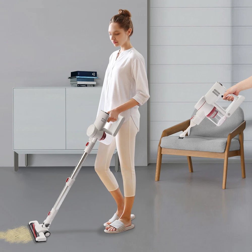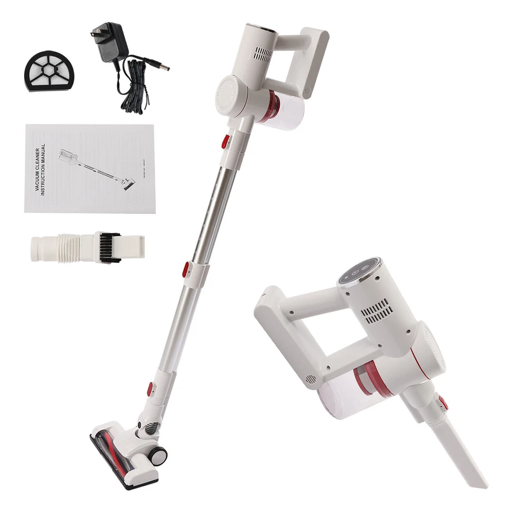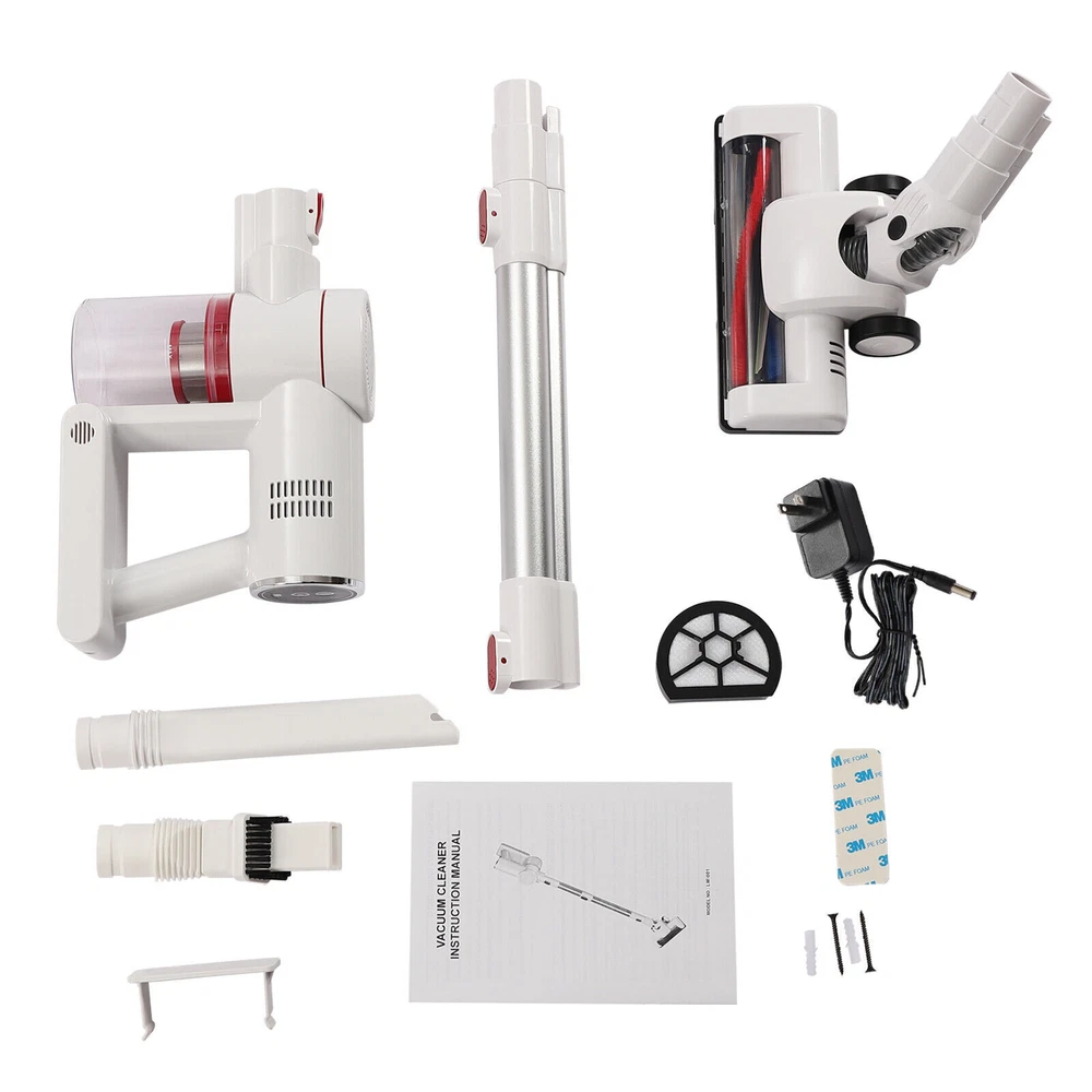 Specification Model: LM-001 Color: White, Silver Housing Material: ABS Style: Modern Plug Voltage: 110V Rated Voltage: 100-240V Power: 150W Number of Gears: 2 Vacuum Suction: 9500PA (Strong Gear), 5000PA(Standard Gear) Power Type: Plug-in, 3*2200mah Lithium Batteries(3.7V) Fully Charge Time: 4h Duration of Use On a Full Charge: 30min(Standard Gear), 15min(Strong Gear) Plug: American Standard Number of Wheels: 2 Wheel Type: Directional Wheel Number of Motors: 2 Motor Type: Pure Copper Motor Motor No-load Speed: 40000rpm Dust Collection Cup Capacity: 0.8L/0.2gal/27oz Brush Head Rotation Angle: Max 270° Rod Rotation Angle: Max 180° (Horizontal), Max 90° (Vertical) Noise: Max 68dB Maximum Clean Area: 120㎡/1291ft² Assembly Required: Yes Net Weight: 1.82kg/4.01lbs Welcome Description Description Bending down to do housework is very tiring and small corners are always difficult to clean. This cordless vacuum cleaner can ease your heavy housework. Made of two pure copper motors, it has high cleaning efficiency with low noise ( Max 68dB ). It has three lithium batteries and each one has a large capacity (2000mah), allowing it to continuously work for more than 15min or 30min under different modes. This cordless vacuum cleaner will be a good addition to your home. Key Features High-quality Material: This product is made of high-quality ABS, which is wear-resistant , waterproof , strong, durable, and not easy to deform. Powerful Suction: It uses two powerful motors and cyclonic duct design to provide strong suction power (9500PA) so that it can easily and quickly suck in fruit shells, paper dust, dust, etc, bringing you a new cleaning experience and saving you lots of time. Excellent Performance: This product uses two pure copper motors, which have strong power, high efficiency, high load capacity, and long-lasting range, providing you with excellent performance. With flexible 180°swivel sideways and 90°up and down, it glides under furniture and cabinets easily to eliminate dust and debris that is hard to reach. Also, it produces low noise (Max 68dB), providing you with a quiet environment. Multi-layer Filtration: Cyclone filtration at the air inlet filters airborne dust, then HEPA filtration and steel filter screen can block fine dust as small as 0.3 microns and lock it in the filter to avoid secondary pollution and ensure good air quality. Lightweight and Convenient: This product is designed to be wireless , which makes it easier for you to flexibly clean the corners in the living room, bedroom, and other places. The lightweight design ( 1.82kg/4.01lbs ) allows you to use it effortlessly with one hand. Women and the elderly will not feel fatigued after using it for a long time. Large Capacity: The dust collection cup has a large capacity of 0.8L/ 0.2gal to store dust, which can avoid air pollution and reduce the cleaning frequency of the machine. Meanwhile, the clear design allows you to view the dust volume for timely cleaning. Long Endurance: The three lithium batteries can support this product to work continuously for about 30min under strong mode and 15min under standard mode on a full charge. It can clean to a maximum area of 120㎡, which can avoid frequent charging to save you lots of time. Snap-on Design: The water tank adopts a snap-on design. After installing the water tank, the brush head can capture dust and hair as well as kitchen air-dried soy sauce and vinegar stains at the same time, avoiding the labor of kneeling to wipe, while reducing the long exposure to absorbing acid and alkali solvent rags to avoid skin aging, roughness, and other injuries to hands. Easy to Operate: The button on the top allows you to turn the machine on or off with just a touch, which is very convenient and quick. Flexible Movement: The two directional wheels at the bottom of the product can facilitate the movement of the product, which makes it easy to clean all corners of the room and can save you a lot of energy. Easy to Install: This product is simple in structure and complete in the package with a detailed instruction manual. You only need a few simple steps to install it, which is very time-saving and labor-saving. A Great Gift: The modern style and good practicality make it a great gift. You can present it to the elders to ease the housework. Protective Packaging: In order to prevent the product from being damaged and bumped during transportation, we fill the package with anti-collision protection foam to protect your products to the maximum extent possible. Guaranteed Customer Service: We are committed to providing quality products and services. If you have any questions, please feel free to contact us. We will reply as soon as possible and solve the problem. Details Ergonomic Handle: The handle is ergonomic and comfortable to hold, which can reduce the fatigue of your hands and arms, and provide you with a pleasant experience. Wall Bracket: It allows you to hang this product on the wall for easy storage. Heat Dissipation Holes: There are heat dissipation holes on the product, which can dissipate heat in time and prolong the service life of this product. Cleaning Brush: It has dense bristles and is suitable for cleaning irregular object surfaces such as curtains, keyboards, and chandeliers. Crevice Nozzle : It is suitable for window slots, sliding door slots, and other furniture with narrow edges and small corners. LED Headlights: It is equipped with LED headlights to easily track dust and debris in dark places. Application It is ideal for cleaning the home, garage, workshop, and vehicle projects. Specification Model: LM-001 Color: White, Silver Housing Material: ABS Style: Modern Plug Voltage: 110V Rated Voltage: 100-240V Power: 150W Number of Gears: 2 Vacuum Suction: 9500PA (Strong Gear), 5000PA(Standard Gear) Power Type: Plug-in, 3*2200mah Lithium Batteries(3.7V) Fully Charge Time: 4h Duration of Use On a Full Charge: 30min(Standard Gear), 15min(Strong Gear) Plug: American Standard Numbe