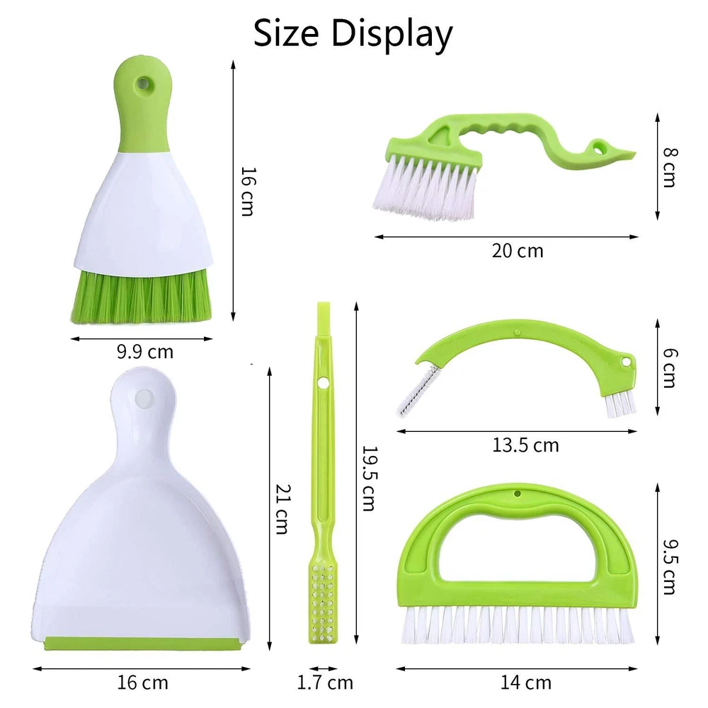 LeeLoon Hand-held Dustpans Grout Brush Groove Gap Cleaning Tools Set, 5 Pack, Green, ABS Plastic, Polypropylene ✔️【Dust Pan and Brush】Creative ergonomic designed Mini Hand Broom and Dustpan Set for comfortable grip, Soft, flexible,portable Nesting Tiny Cleaning Broom Set for Table, Desk, Countertop, Key Board, Cat, Dog and Other Pets. ✔️【Muktifunction 3 in 1 Grout Brush】Three multipurpose grout cleaning Brushes make you a cleaning expert.Big Semicircle brush for grout, joint tiles, tub, floor cleaning or utility room. Long Brush is the specialist for wall tile, rails, window frames. Small curve brush for shower door lintels, sink drainages, cooktops and dials(contained/nested into the big brush). ✔️【Groove Gap Cleaning Tools】Design by Swan shape and with hanging hole can hang up and occupy less space,narrow tufted brush on one end to sweep away loose dirt. Scraper on the opposite end to dislodge debris trapped in corners. ✔️【Great Material】The Household cleaning brushes sets are composed of handles in premium ABS plastic and the bristles in polypropylene,which is durability.Simply rinsing with hot soapy water or just put them on the top rack of the dishwasher to clean. ✔️【Ergonomic Design and Best Match】Package include 1 set Hand-held Dustpans brush,1 set Grout Brush,1 Groove Gap Cleaning Tools. Whisk-broom brush shape with a rubber handle,Extensive design with curved non-slip handles perfectly fits your right and left hande, Swan shape Groove Gap Cleaning Tools keeps your hand out of the way to prevent injury. SHIPPING Domestic Buyers - We have confidence in our products, but if you are not fully satisfied please contact us within 30 days of purchase and you will get full refund. - We ship within 3 business days of payment, usually sooner - We offer FREE shipping on all orders! - We only ship to the lower 48 states, no APO/FPO addresses or PO Boxes allowed International buyers – please note: Import duties, taxes, and charges aren't included in the item price or postage cost. These charges are the buyer's responsibility. - Please check with your country's customs office to determine what these additional costs will be prior to bidding or buying. * Order Cancellation Policy ** You can return a product for up to 30 days from the date you purchased it. 1. The seller reserves the right to cancel the special case only due to eBay cancellation fee. 2. The decision of seller is the final. 3. The seller will respond to the cancellation request within 2 business days. Please wait for the result of cancellation. 4. In case the cancellation is not completed by some reasons, the buyer can follow the options below to get the refund. 4.1 The buyer can reject the item when it arrives. 4.2 The buyer can send the item back to the seller within 30 days If the buyer receives item (USA Shipment ONLY). The seller will provide the FREE return label to the buyer when the buyer opens " Return Item" case on eBay by using the reason as "Change my mind" ONLY. 5. When buyer has placed the order. The order will be processed and completed by automatic warehouse system within 5 minutes. In case that buyer sends the cancellation request after 5 minutes of placing the order, the request will be rejected. **Sending direct message to cancel the order is not allowed for every case.* Return Policy For the return case - If buyer would like to return the items for refund or replacement, please CONTACT SELLER to receive the free return label from seller. The refund or replacement will be processed with the tracking number of return label which is provided by seller only. The other ways of return which are not approved by seller will not be processed for the refund or replacement.