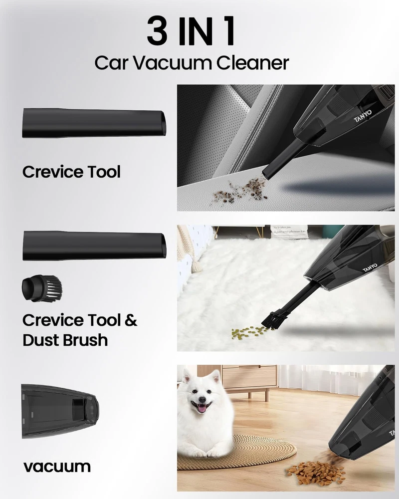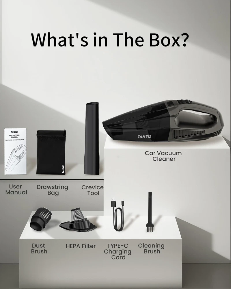 Power Suction & Brushless Motor: FA15BS handheld vacuum features an updated brushless motor with a suction power of 12000 Pa (Max mode). With a suction speed of up to 80,000 r/min, it effectively cleans dirt and deposits such as pet hair, confetti, dust, and soot. The powerful suction helps you complete your cleaning quickly. Car vacuum portable has a quieter noise reduction system with a brushless motor. The brushless motor lasts longer and is quieter than the brushed mode. Charging & Runtime: Wireless handheld vacuum comes with a 2000 *2 mAh rechargeable lithium-Ion battery and a Type-C charging port that takes almost 4 hours to fully charge for a full charge and offers about 20 minutes of continuous use. The red indicator means it's charging, and the green indicator is fully charged. With the multifunctional Type-C USB charging port, you can conveniently charge hand held vacuum in your car or anywhere else you want. Cordless & Portable Design: There are colors available for the dust cups, but their functions are the same. The hand vacuum cordless rechargeable packaging measures 11.4*3.9*4.4 inches and weighs only 1.1 lbs. Hand vacuum comes with a cordless design, so it can help you clean anywhere and at any time. Mini vacuum cleaner is easy to carry and can be suitable for all occasions(drawer, car, or storage cabinet). So whether it's your car, home, or office, you can clean easily and efficiently! Stainless Steel Washable HEPA Filter: The HEPA filter of car vacuums with best suction cordless is made up of washable, durable stainless steel filter material, which captures dust more efficiently and lasts longer. It also includes an extra HEPA filter of the same material in the packaging, which may be replaced at any time. In addition, small vacuum cleaner will automatically shut off when the HEPA filter becomes dirty, indicating that it needs be cleaned. PACKAGING ACCESSORIES & SERVICE: FA15BS hand held vacuum has these some accessories, include car vacuum cleaner, crevice tool, dust brush, extra washable stainless steel HEPA filter, drawstring bag, charging cord, user manual, cleaning brush. All the accessories you can put inside the drawstring bag, easy for you to carry and . Also, if you have any questions or problems with the quality of the product, please do not hesitate to our team, we will help you to solve problems.