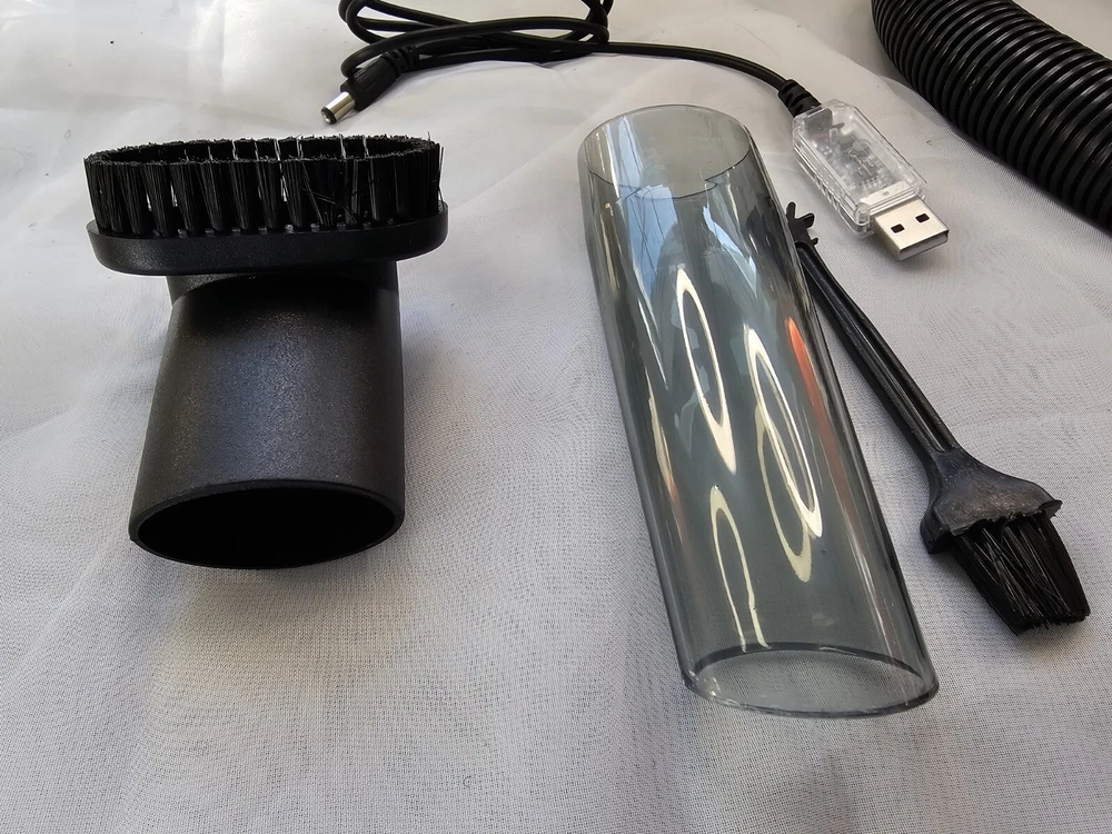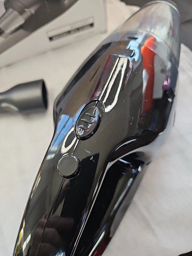 Item has a slight smudge on the top, next to the power and light buttons. Other than that, this vacuum is in great shape. Only turned it on to verify that it works well. The Handheld Vacuum Cordless, Lightweight Mini Vacuum is a portable device that weighs less than 10 lb, making it easy to use for quick cleaning tasks. It is cordless and rechargeable via USB, with a charge time of 3-4 hours for a runtime of 20-30 minutes. This black vacuum features a HEPA filter and comes with accessories such as a filter and duster, ideal for household cleaning in small spaces and in vehicles. Its bagless design and compact size make it a convenient option for those looking for a handheld vacuum for quick and efficient cleaning.