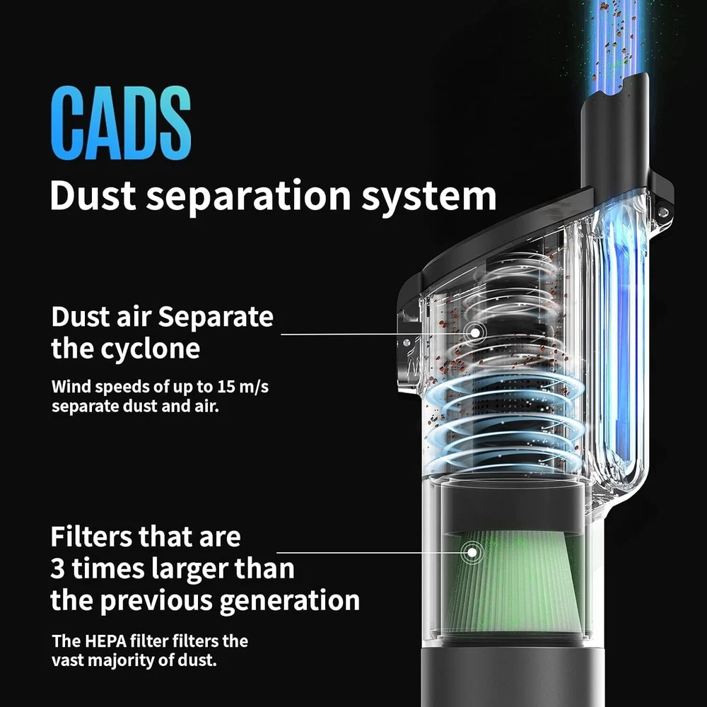 Powerful 3 Power Modes:The handheld vacuum cordless adopts a 150W powerful aluminum fan motor, provides 20000Pa great suction power on strong mode, can easily clean dust, debris, pet hair, and other large particles in seconds. Only one button is featured with this mini vacuum cleaner, easy to operate and adjust power mode. Handheld Vacuum Cordless cleaner: The handheld cordless vacuum comes with 5 attachments to meet various cleaning needs. The flat nozzle is perfect for reaching narrow gaps and corners. The brush nozzle is designed to remove hair from carpets, sofas, or dust from keyboards. The extended flexible hose nozzle allows for reaching desired spots with ease. Unique Cyclone Chamber Design: introduces the revolutionary cyclone separator into a compact handheld vacuum cleaner for the first time. The car handheld cordless vacuum distinctive cyclone design not only maximizes the smooth airflow through the filter, alleviating clogs but also maintains consistent suction power. It enables the vacuum cleaner to operate with high efficiency and powerful suction at all times, ensuring deep cleaning performance. Quick Charging and Extended Runtime: This car vacuum cleaner is equipped with a high-power, high-capacity battery, which can be fully charged in 3-6 hours . It can operate in low, medium and high modes for 50 minutes, 22 minutes, and 12 minutes respectively. This allows you to clean various areas without interruptions. Additionally, the car vacuum cleaner comes with a charging cable, allowing convenient charging in your car or at home, ensuring you always have sufficient power to complete your cleaning tasks. Effortless Garbage Handling: The handheld vacuum cleaner is designed for easy dust disposal. Simply press the cleaning chamber button to empty the trash, ensuring your hands stay clean. The transparent design allows you to see the vacuuming process clearly, reminding you to clean it in time. With a generous capacity of 150 milliliters, this handheld vacuum cleaner fully meets your daily car cleaning needs for garbage storage.