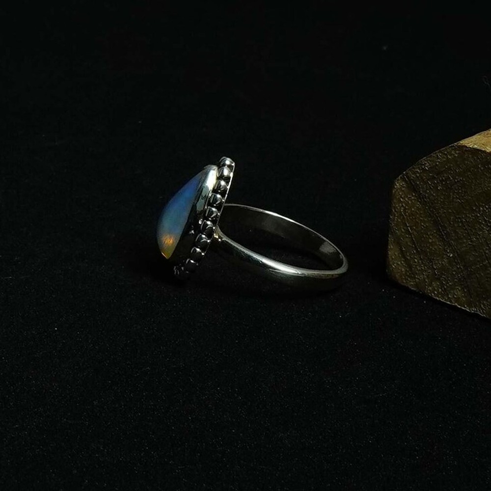 Description Natural Ethiopian Opal Gemstone Ring Handmade 925 Silver - Unique Gift for Her This exquisite Natural Ethiopian Opal Gemstone Ring is the perfect blend of elegance, craftsmanship, and vibrant color, designed to make a statement. Handcrafted with care by skilled artisans, this stunning ring features a high-quality Ethiopian Opal set in a solid 925 sterling silver band, making it a beautiful and timeless piece that will be cherished for years to come. Whether you're looking for a special gift for someone dear or want to treat yourself, this ring is an ideal choice. Key Features: Genuine Ethiopian Opal: This ring showcases a captivating Ethiopian opal, renowned for its vibrant play of color, often displaying a mesmerizing blend of fiery reds, blues, greens, and purples. Each opal is one-of-a-kind, ensuring that no two stones are exactly alike. The natural opal stone is ethically sourced and carefully selected for its exceptional beauty and unique characteristics. Handmade Craftsmanship: Every ring is meticulously handmade by expert artisans who bring years of experience to their craft. The level of attention to detail and the dedication to creating high-quality jewelry is evident in every aspect of this ring. The stone is securely set in the band, and the silverwork around the opal is elegantly designed to enhance its natural beauty. Premium 925 Sterling Silver: The band is made from durable and hypoallergenic 925 sterling silver, ensuring a long-lasting and comfortable wear. Sterling silver is a popular choice in jewelry for its lustrous shine and resistance to tarnishing, making this ring not only an eye-catching piece but also one that will stand the test of time. The silver band features a smooth, polished finish for a sophisticated look that complements the radiant colors of the Ethiopian opal. Versatile Design: The design of this ring is both contemporary and timeless, making it suitable for various occasions. Whether it's a birthday, anniversary, engagement, or just a thoughtful gesture to show someone how much they mean to you, this ring is a versatile and elegant gift. It pairs effortlessly with casual or formal attire, adding a touch of elegance to any outfit. Perfect Gift for Her: If you're looking for a unique and meaningful gift for the special woman in your life, this Ethiopian Opal ring is an excellent choice. The opal’s colorful display is said to symbolize passion, love, and creativity, making it a symbol of personal significance for the wearer. Whether it’s for a loved one, a friend, or a family member, this ring is sure to be appreciated for its beauty and symbolic meaning. Unique and One-of-a-Kind: Ethiopian opals are prized for their rare and vibrant appearance, making this ring a truly exceptional piece. The unique play of color in each opal means that no two rings are exactly the same. Your ring will be a true reflection of the natural wonder that Ethiopian opals are known for. Why Choose This Ring? Handcrafted Excellence: This ring is made by skilled artisans, ensuring a product that is not only beautiful but also well-crafted and durable. Each ring is inspected for quality before it reaches you, ensuring satisfaction with every purchase. Ethically Sourced Materials: The opals used in this ring are ethically sourced, making it a sustainable choice. The 925 sterling silver band is also sourced responsibly, giving you peace of mind knowing you're purchasing a product that aligns with your values. Timeless Elegance: Opals are timeless gemstones, and their vibrant colors make them an enduring choice in jewelry. This ring is designed to be worn daily or saved for special occasions, becoming a piece that will be treasured for a lifetime. Gift-Ready Packaging: This stunning ring comes beautifully packaged, making it ready for gifting. Whether it’s a birthday, anniversary, or any other special event, you can feel confident presenting this ring as a thoughtful and meaningful gift. Sizing Information: This ring is available in a variety of sizes to ensure a perfect fit. Please refer to the sizing chart provided in the images for accurate measurements. If you're unsure about your ring size, feel free to reach out, and we'll be happy to assist you in choosing the right size. Care Instructions: To keep your opal ring looking its best, we recommend avoiding prolonged exposure to harsh chemicals or extreme temperatures. Gently clean the silver band with a soft cloth to maintain its shine, and store the ring in a jewelry box or pouch to protect it from scratches. Conclusion: The Natural Ethiopian Opal Gemstone Ring Handmade 925 Silver is not just a piece of jewelry, but a work of art that brings beauty, color, and meaning to the wearer. Its combination of vibrant opal and high-quality silver makes it a stunning accessory that will elevate any look. Whether you're buying it as a gift or for yourself, this ring is a must-have for those who appreciate the unique beauty of opals and the artistry of handmade jewelry. Don't miss the opportunity to own or gift this extraordinary piece today!