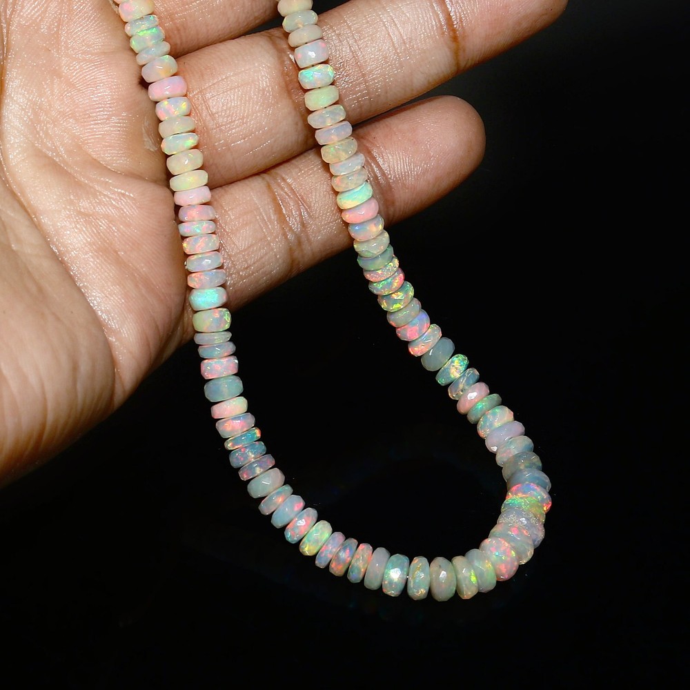 Shipping was 12 days to SoCal. Packed well in a small box. Beautiful opal necklace 😍 Exactly as described. No visible damage to the stones. The iridescent display of colors, caused by the diffraction of light is captivating.