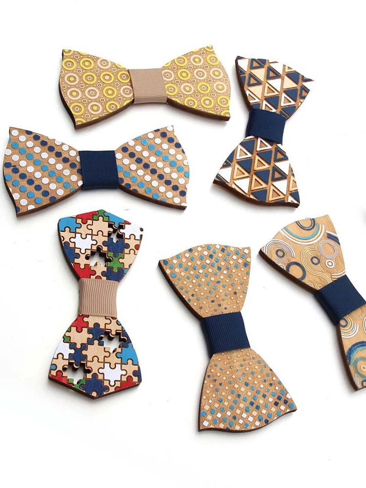 Wood Bow Tie Pattern Bow Tie Decorative Bow Tie Accessories Geometric Bow Tie