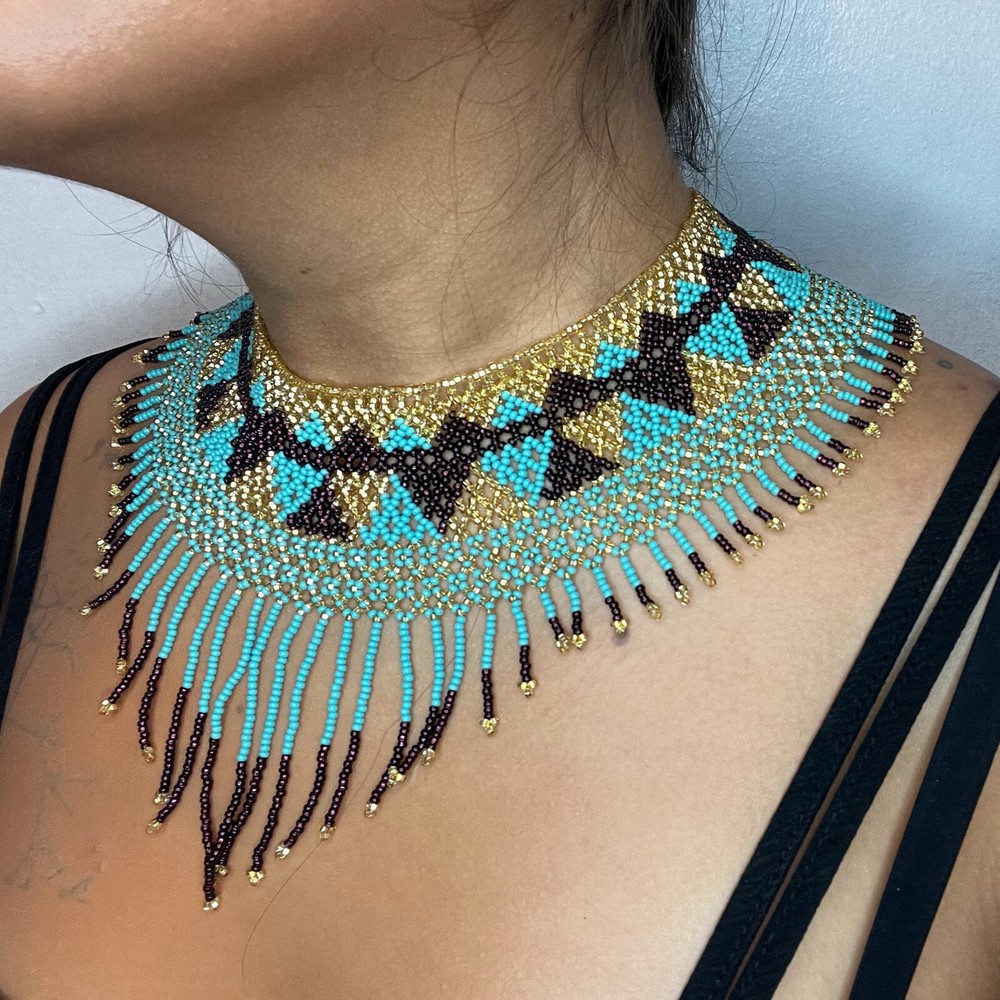 Handmade Aztec Beaded Choker Necklace from Mexico