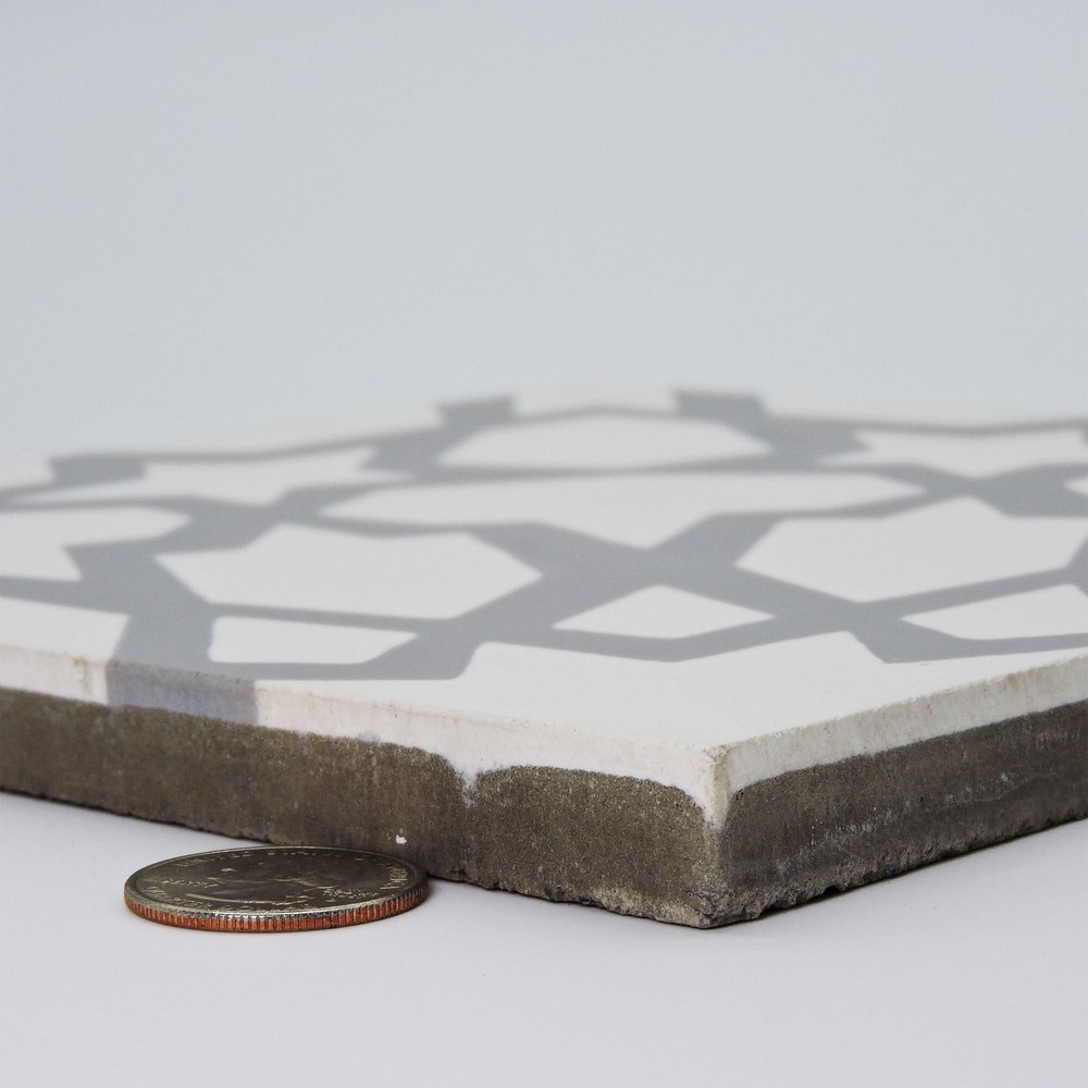 Details:Bahja is a traditional cement tile. Its complex pattern will bring life to any dull room. Bahja is the perfect tile to bring an overwhelmingly beautiful personality to your home. It will complement any part of your home.Features: Pack of 12 tiles when ordering a box (8x8), Sample is 1 tile only Crafted in Morocco Moroccan Mosaic and Tile House brand Floor and wall tiles Eco-friendly Handmade Cement, granite White, Grey Professional installation is recommended 2.3 tiles per square foot, 12 tiles per box, 5.22 square feet per box Tile measures 8 inches long x 8 Inches wide Sealant :ITEM# 24693868 Story Behind the Art:"It's more than tile, it's art." That simple statement is what sets the craftsmanship of Moroccan Mosaic apart from the rest. Based in the small city of Sale, Moroccan Free Shipping Over $49.99* Details Handmade Bahja in White and Gray Tile, Pack of 12 (Morocco) Product Description: Details: Bahja is a traditional cement tile. Its complex pattern will bring life to any dull room. Bahja is the perfect tile to bring an overwhelmingly beautiful personality to your home. It will complement any part of your home. Features: Pack of 12 tiles when ordering a box (8x8), Sample is 1 tile only Crafted in Morocco Moroccan Mosaic and Tile House brand Floor and wall tiles Eco-friendly Handmade Cement, granite White, Grey Professional installation is recommended 2.3 tiles per square foot, 12 tiles per box, 5.22 square feet per box Tile measures 8 inches long x 8 Inches wide Sealant :ITEM# 24693868 Story Behind the Art: "It's more than tile, it's art." That simple statement is what sets the craftsmanship of Moroccan Mosaic apart from the rest. Based in the small city of Sale, Moroccan Mosaic is a family business going back 4 generations. When the owner, the current head of the business took a trip home, he saw that the business was not doing well and set about reviving it. One important change he made was introducing black, grey, and white designs to appeal to American and European customers. It worked. When he started, they employed 2 workers and now they have nearly 80 on staff. The workshop itself is fairly simple, and the techniques used to create the tiles are steeped in tradition. Some modern equipment is available, though the workers prefer to use the more rustic tools. The creative process is time intensive and done by hand, no corners be cut or production be rushed. Environmentally responsible and resource efficient, no chemicals are used at any step. For example, colors used come from nature -- literally. Green comes from mint leaves, orange from orange peel, and black from charcoal. The tiles themselves are a simple mixture of cement, sand, and granite powder. Moroccan Mosaic hires only local workers, teaching them a valued skill as well as paying them fair wages. The goal for his business is to share the tradition of gorgeous Moroccan tile, grow the business, and employ more and more workers. The handcrafted touch of artisan skill will create variations in color, size and design. Color differences may occur between the actual product and your computer screen. If buying two of the same item, slight differences will occur from piece to piece. Imported Country of OriginMorocco Disclaimers & Disclosures: Please be aware that if you order more than 151 pounds of tile or flooring, the order may need to be shipped Freight and our Oversized Item Delivery/Return policy will apply. Please click here for more information.