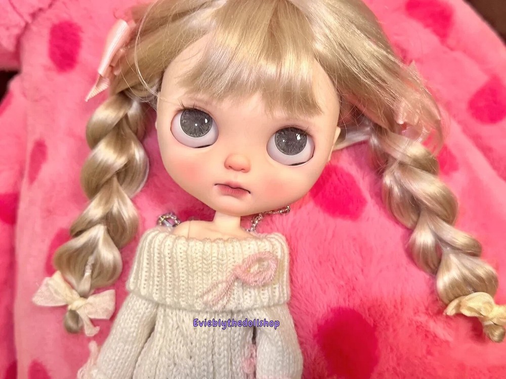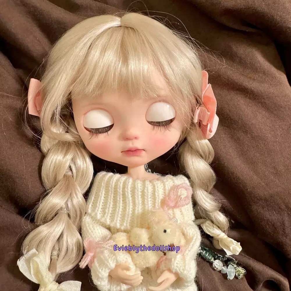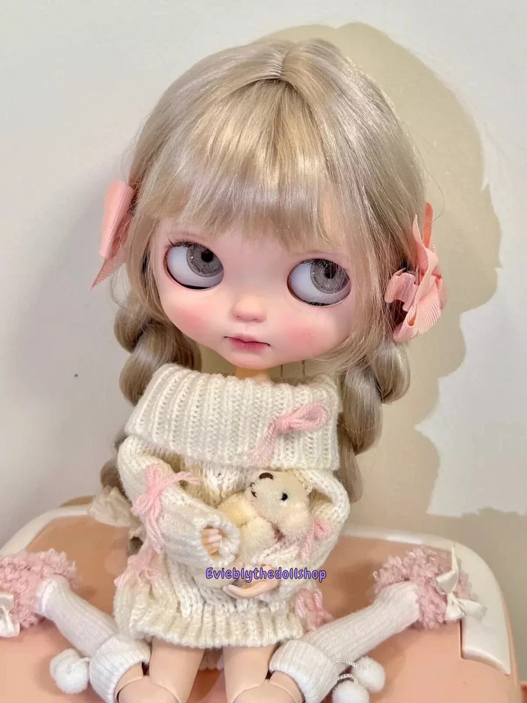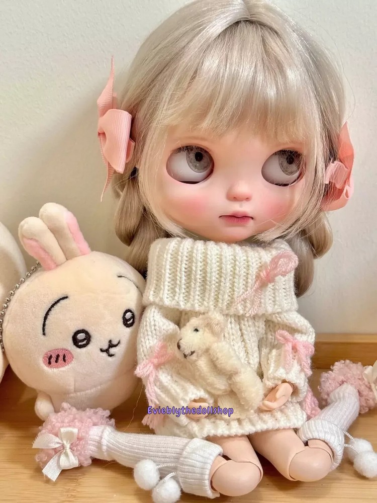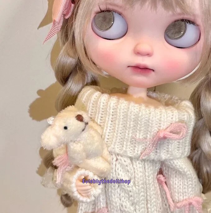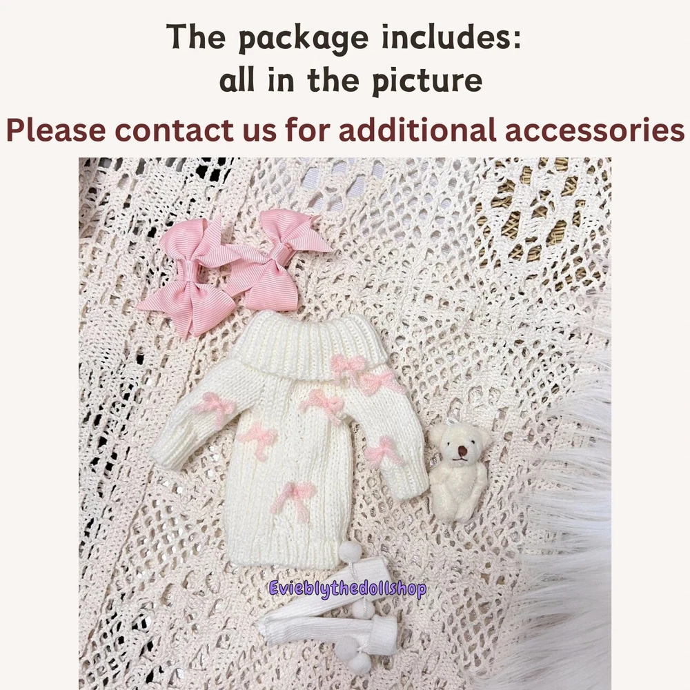 Model bust size about 10cm Model shoulder width about 5cm Model waist size about 8cm model hip size about 12cm model foot length about 2.3*1cm (data manual measurement, unavoidable errors) NOTE: This listing only sell doll clothes, package not included Baby Doll, if you want the baby doll, pls to contact us before buying. Description: Add a touch of charm and cuteness to your Blythe doll's wardrobe with this stylish three-piece outfit set, designed to fit OB22 and OB24 Blythe dolls perfectly. This set includes a knitted sweater, a pair of butterfly hairpins, and a pair of socks, along with a small plush toy, making it a versatile and adorable addition to your doll's collection. Outfit Features: Knitted Sweater: A charming sweater with pink bows and a classic roll-neck design, adding a touch of elegance to your doll's ensemble. Butterfly Hairpins: A pair of pink hairpins with a delicate bow design, perfect for adding a finishing touch to your doll's hairstyle. Socks: A pair of white socks with a ribbed texture, providing a touch of detail to your doll's lower wear. Plush Toy: A small and cute plush toy, adding a playful element to your doll's accessories. Package Includes: 1 Knitted Sweater 1 Pair of Butterfly Hairpins 1 Pair of Socks 1 Plush Toy Perfect for Collectors and Customizers: Whether you're a dedicated Blythe doll collector or a customizer looking to add unique outfits to your collection, this handmade three-piece set is a must-have. It also makes a thoughtful gift for Blythe enthusiasts. Note: Doll, shoes, and other accessories are not included. Transform your Blythe doll's look with this stylish and adorable outfit set. Add this beautiful set to your cart today!