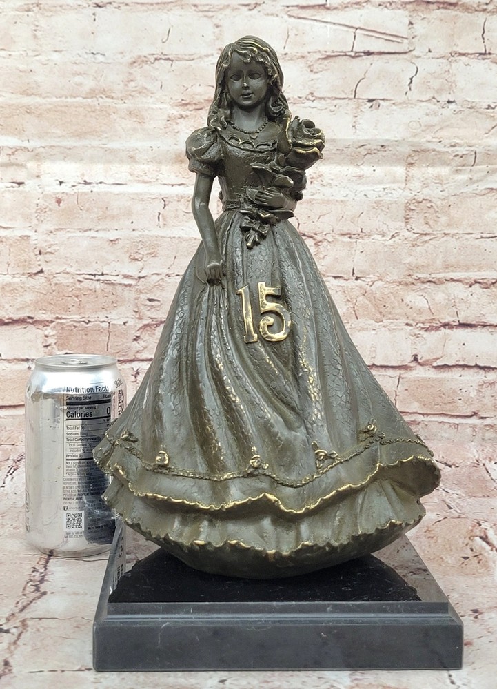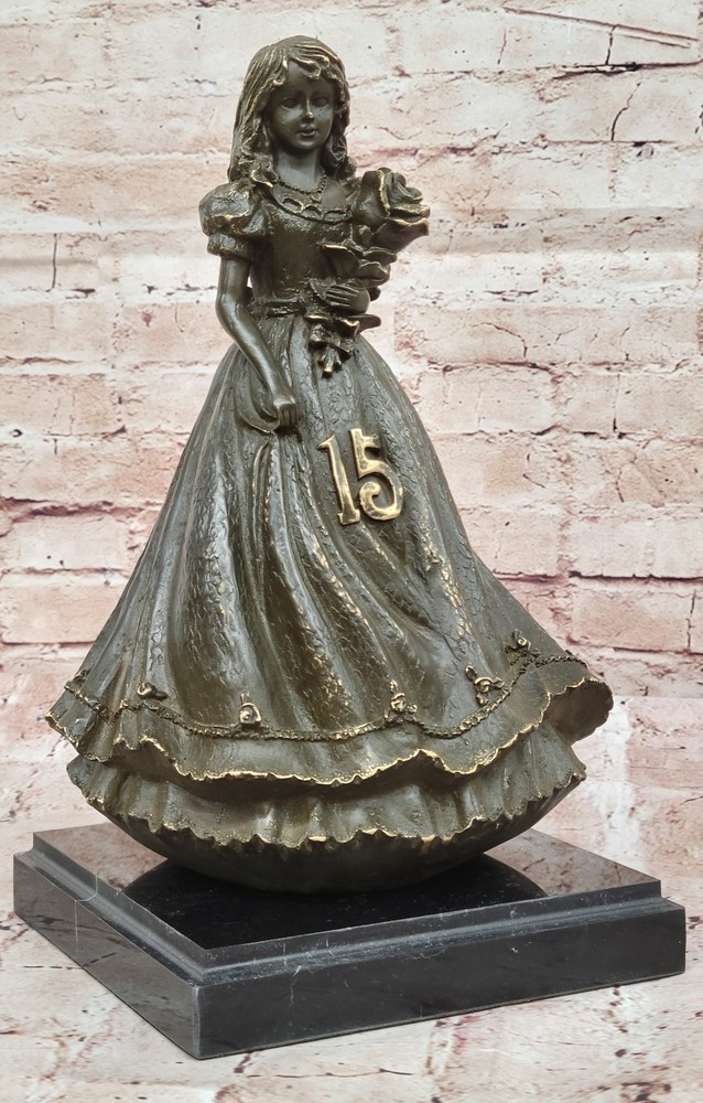 Hand Made Bronze Pageant Girl – Signed Patoue Decorative Art Deco Statue Hand Made Bronze Pageant Girl – Signed Patoue Decorative Art Deco Statue Condition : This sculpture is in perfect condition. Bronze Dimensions with Marble Base: Height 13" x Width 8" Marble Dimensions:8" X 8" Height without base:12" Weight:13 LBS Inventory:24GTS2278342 Celebrate grace and elegance with this limited edition bronze sculpture of a Southern Belle, delicately holding a flower in hand. Signed and numbered by the artist Jean Patoue, this charming young pageant girl embodies timeless beauty and poise, reminiscent of a bygone era of refinement and tradition. Expertly handmade using the revered lost wax method, the sculpture showcases remarkable detail—from the soft flow of her dress to the gentle expression on her face. The rich brown patina enhances the texture and warmth of the piece, making it a standout accent for any fine art collection. Mounted on a solid square marble base, this sculpture brings sophistication to any space and makes a wonderful gift for collectors, admirers of Southern heritage, or lovers of fine bronze art. Shipping Terms : Most of our items are shipped via USPS (United States Postal Service) mail or UPS. Most orders are shipped within 24-48 hours of purchase. Please be aware that not all items are available for USPS shipping due to size and weight. We do ship to Hawaii, Alaska, Canada, Puerto Rico, APO/AE, and U.S. Virgin Islands, however, an additional charge may be required. Please contact us before making any purchases in these areas. For Non-USA customers, you may be responsible for all duty, tax, brokerage fees that may be due upon delivery (shipping costs cover freight charges only). We also ship internationally. Please refer to the "Shipping and Handling" chart for the rates for each area. Payment : We accept just about any form of payment. PayPal, Master Card, Visa or American Express credit cards. Money orders, cashiers checks, and even personal or business checks. For governmental institutions, we will also accept a purchase order. Please understand that for personal or business checks we have to wait for the check to clear (usually 7 days) before shipping. Condition : New Detailed Hand Crafted Hot Cast Bronze Satisfaction Guaranteed. This is Stock Photo, Slight Color Variation!! Listing and template services provided by inkFrog