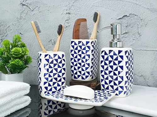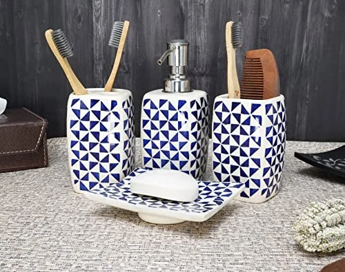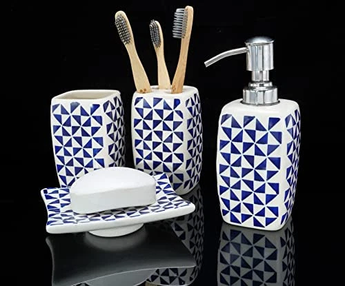 30 Days Return Policy Fast Delivery Trusted seller Handmade Ceramic Bathroom Accessories Set of 4 Soap Dispenser Toothbrush Stand Soap Dish/Tray Tumbler Home Decoration Bathroom Countertop Vanity Organizer Complete Bath Luxury Accessory Product Description ✨ GORGEOUS CERAMIC BATHROOM ACCESSORIES SET: This beautiful Handmade ceramic bathroom set is completely hand-painted by skilled craftsmen, Gives nature touch to your bathroom, Their beauty will last through out the years. Made of premium quality material & It is also dishwasher safe. you can easily clean up every piece in the set. ✨ QUALITY CERAMIC SET: 4 pcs Set of bathroom accessory set is Handmade of high quality ceramic that can easily last for longer. Soap Dispenser (Refillable) 2.5x2.5x6.5" (LxWxH) Rust Proof Pump, Brush Stand 2.5x2.5x4.5" (LxWxH), Mouthwash Cup 2.5x2.5x4.5" (LxWxH), Soap Dish/Tray 5x3.8x1.2" (LxWxH) Approx. Dazzlingly complement your modern bathroom or home decor with this beautiful ceramic set. ✨ COMPLETE LUXURY SET: Your bathroom deserves the best, We providing everything you'll ever need to keep your bathroom fully functional, It's easy to use and add a sense of luxury to your bathroom. The Blossom, Watercolors and beautiful natural hand-painted designs can add a gorgeous classy look to your home decoration. ✨ HANDMADE CLASSY DESIGN: Adds style and elegance to your bathroom counter, earn compliments from guests, each design painted on the beautiful surface by artisan hands, The bath set is a classic contemporary design in that can be added to any bathroom decor to make it look elegant and organized. ✨ IDEAL GIFT: Bless your selves and your loved ones with this beautiful handmade ceramic bathroom accessory set on any special occasion, Our all products are handmade you will receive the similar item as picture shown, t may exists slight deviations in color and looks Due to Photographic effect. Shipping Returns Payment Shipping Shipping is FREE to all addresses other than APO/PO boxes in the lower 48 states. All our stock ships from US-based warehouses. Shipped via USPS or UPS (depending on location and package weight) Unless stated otherwise, all orders will ship within 24-72 hours of your payment being processed. Check our feedback to see the great reviews of FAST shipping we offer. Returns As our valued customer, we will do our best to make sure the product you receive arrives to you on time and as expected. If you are not satisfied with your purchase, please contact us within 30 days of receiving your order to process a return. Payment We currently accept payment via eBay managed payments only. Once payment is cleared, we will dispatch your shipment within 1-3 business days. Please refer to the "Shipping" tab for more information regarding shipping speed to your destination.