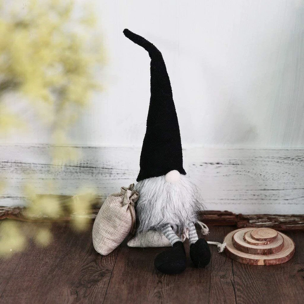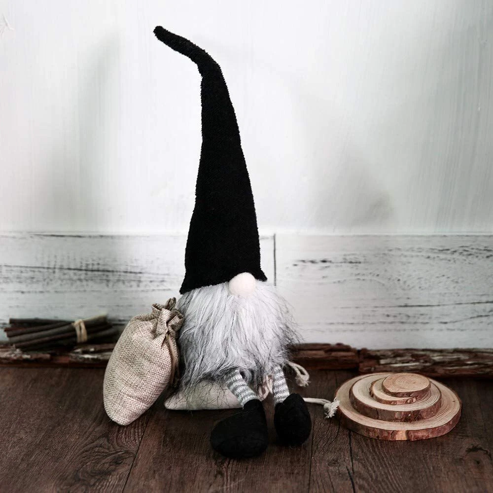 Handmade Christmas Gnomes Decorations Presents Swedish Plush Tomte Elf Doll Features: -- The dwarf plush toy is made of handmade and environmentally friendly materials, the cute appearance is very popular with people, very ideal for gift giving to family and friends. -- The dwarf plush toys are traditionalists, great for spreading the holiday spirit, and according to folklore, they're known for protecting farms, homes, and children, making them perfect for protecting Christmas gifts and bringing health, love, and money. -- Makes the perfect gift for Christmas, parties and holidays, can be used to decorate at the door, under the Christmas tree or nursery, also can be used to decorate your room, such as desk, sofa, bring you fairytale warmth and comfort. -- Wears a black suit, 18 inches tall from bottom to top of the hat, and 3.5 inches wide, his hat is fiber fur hides his eyes & ears safe from the cold, featuring a weighted base that stands on its own, the bendable wire on the hat allows for maximum whimsy. Specifications: Colour: Black Material: Cotton Occasion: Christmas Weight: 8.8 ounces Product Dimensions: 1.57 x 1.38 x 7.09 inches Package Includes: 1x Dwarf Plush Toy