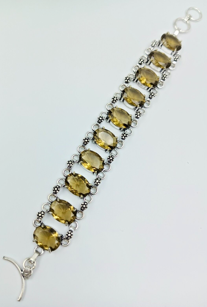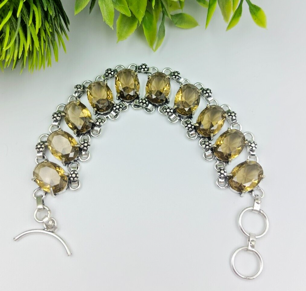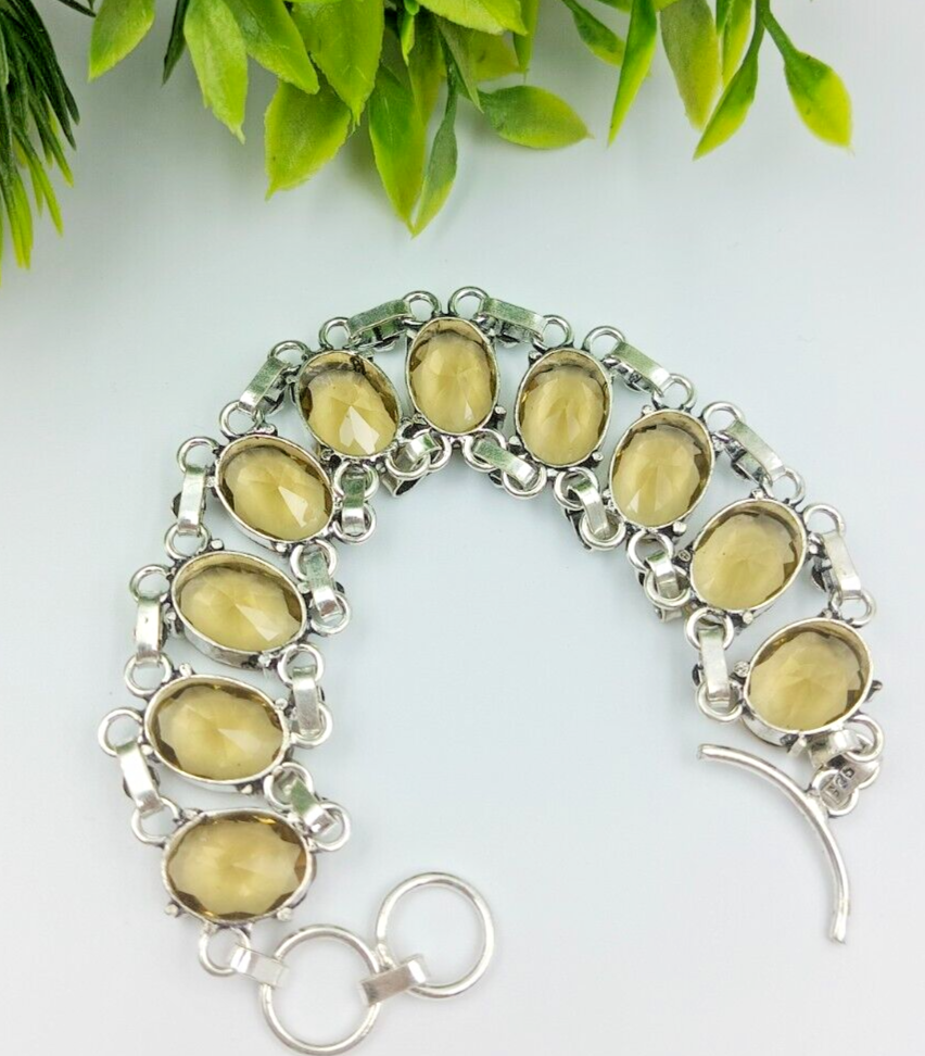 Composition: Sterling Silver (.925) Main stone color: Yellow Secondary Stone: No stone No. Of Stone: 10 Pattern: na Age: Na Stamped: Yes Number Of Stone: 10 Brand: Handmade Main stone name: Citrine Style: Bracelet Type: Handmade