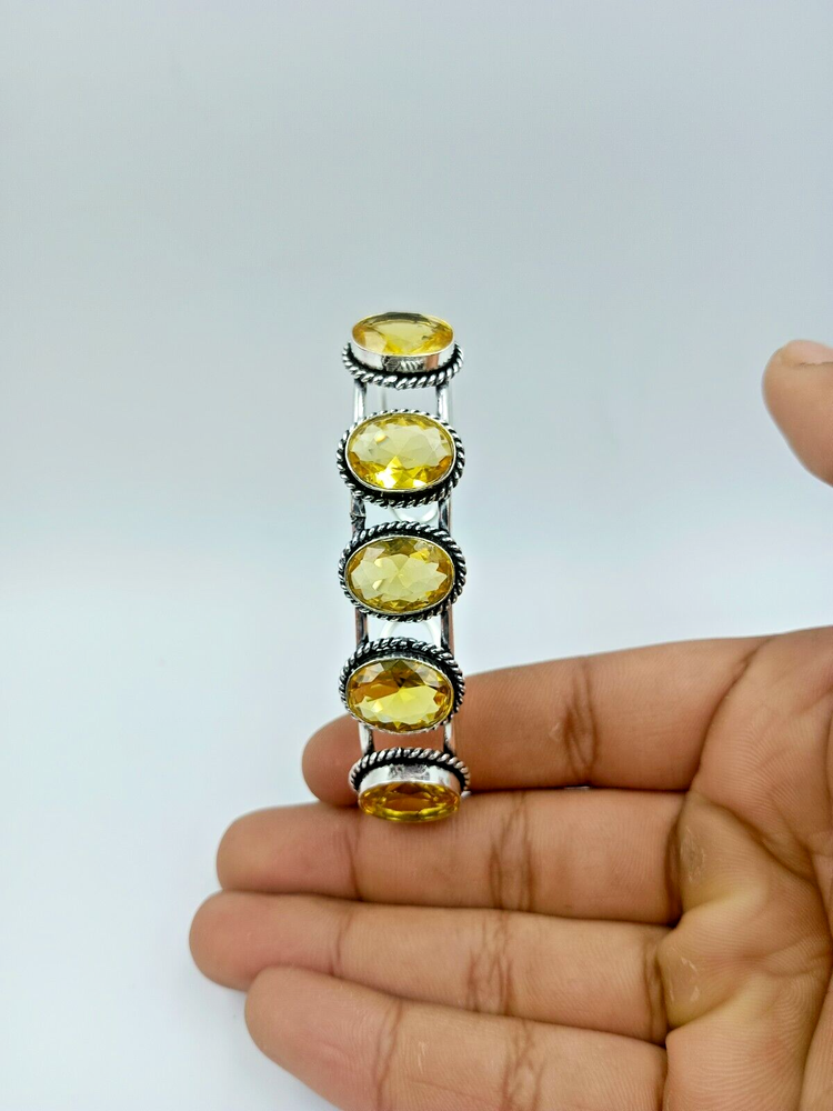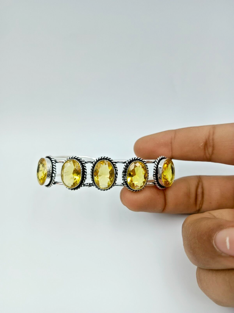 This is a handmade Citrine cuff bangle bracelet made from 925 Sterling Silver. The bracelet features a Citrine gemstone set in the Sterling Silver bangle, making it a unique and elegant piece of jewelry.