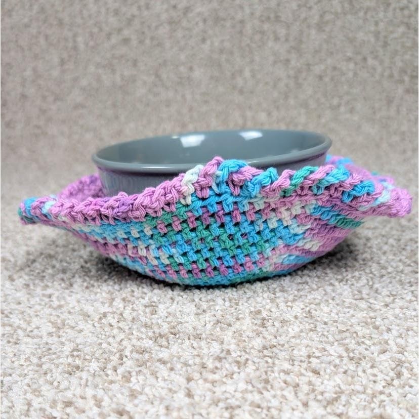 Handmade Crochet Bowl Cozy Reversible Hot Pad Unique Design Purple Blue