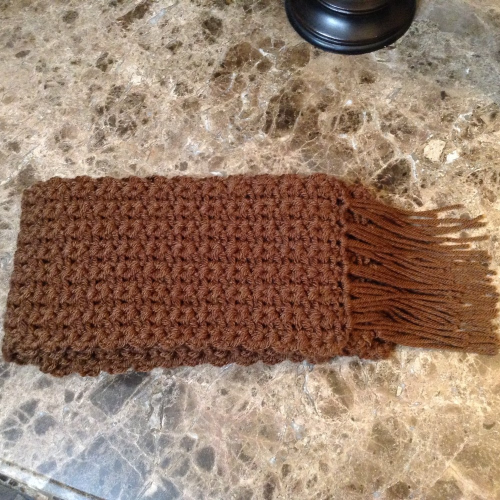 This soft & warm scarf is the perfect scarf for yourself or gift. Ready to mail USPS with tracking Color: Brown - Size: 4".5 x 78" - 100% Acrylic Yarn Crocheted by me with love and care to every detail. Machine wash in lukewarm water, place in delicate washing bag to protect scarf. Do not bleach, dry clear or iron. Dry on low heat. Thank you for visiting my shop #752