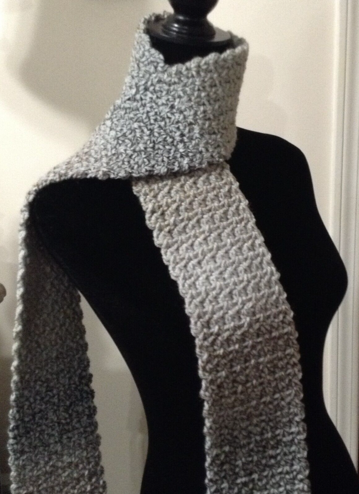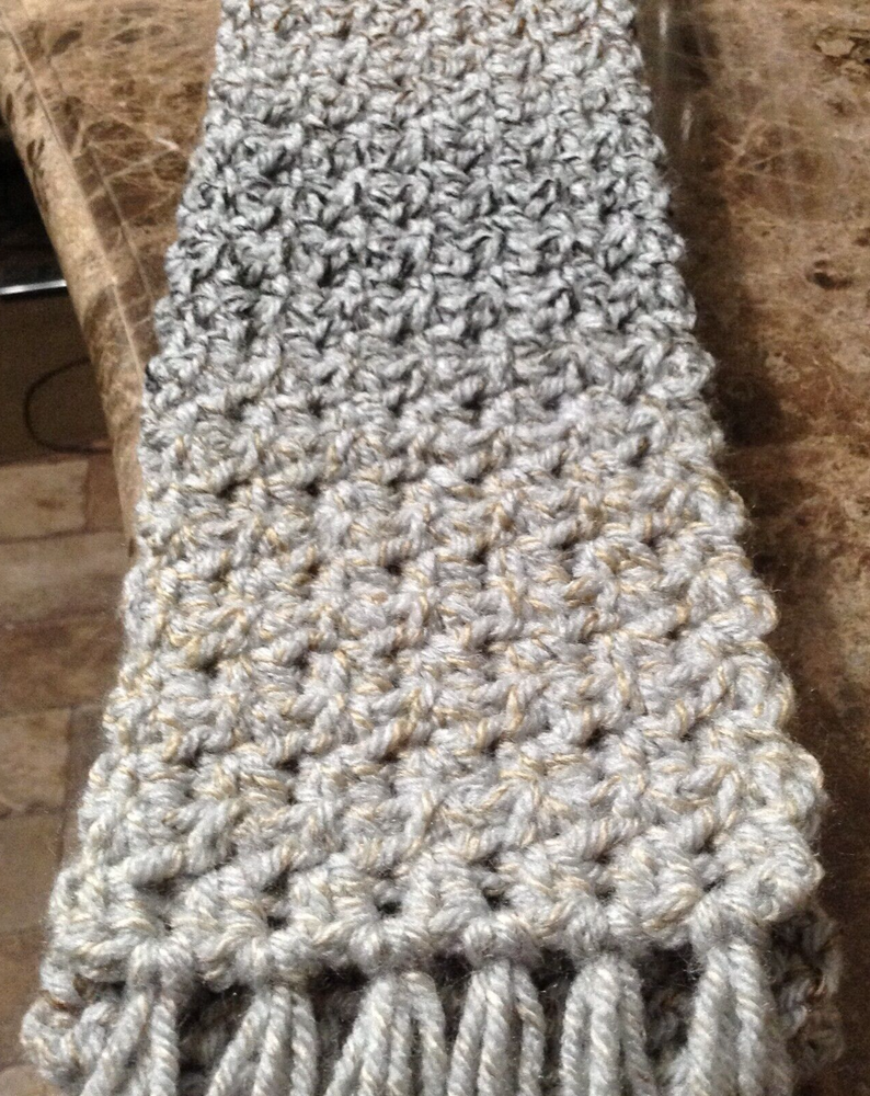 This soft & warm scarf is the perfect scarf for yourself or gift for someone special. Ready to mail USPS with tracking Color: Cappadocia (blend of gray, brown, and beige) - Size: 4" x 62" - 100% Acrylic Yarn Crocheted by me with love and care. Machine wash in lukewarm water, place in delicate washing bag to protect scarf. Do not bleach, dry clear or iron. Dry on low heat. Thank you for visiting my shop #751