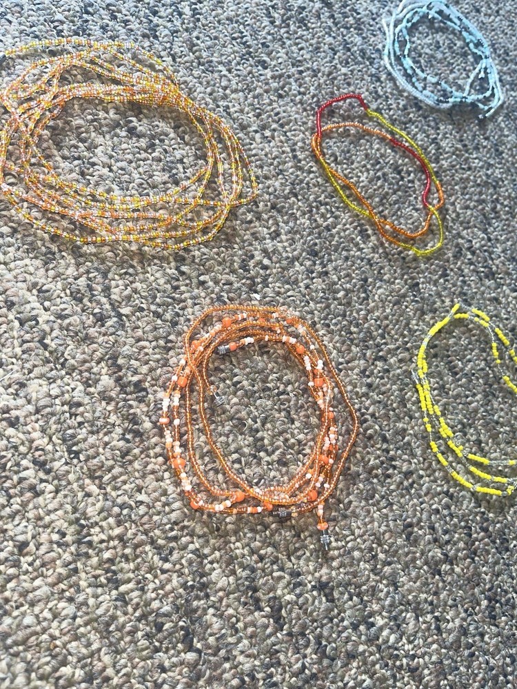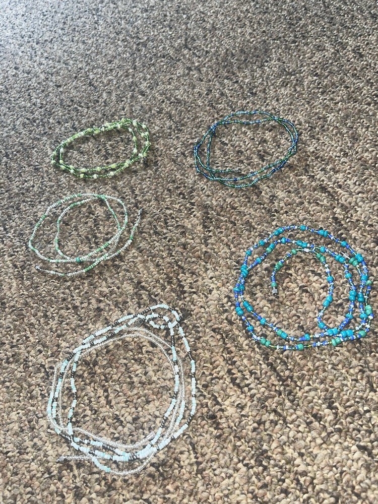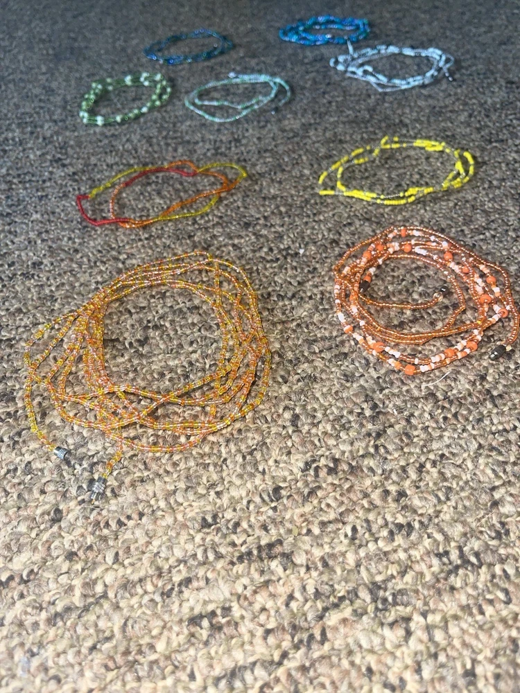 Custom waist beads made by hand. You can personalize your own custom set with specific colors and pattern styles (3-5 waist bead strands) or get individual strands as well.