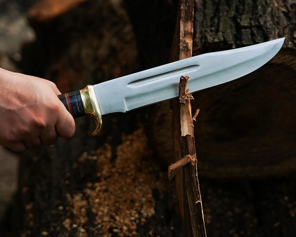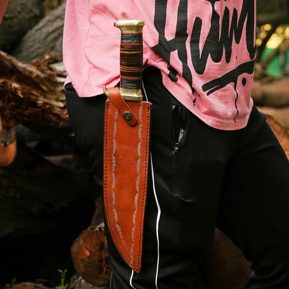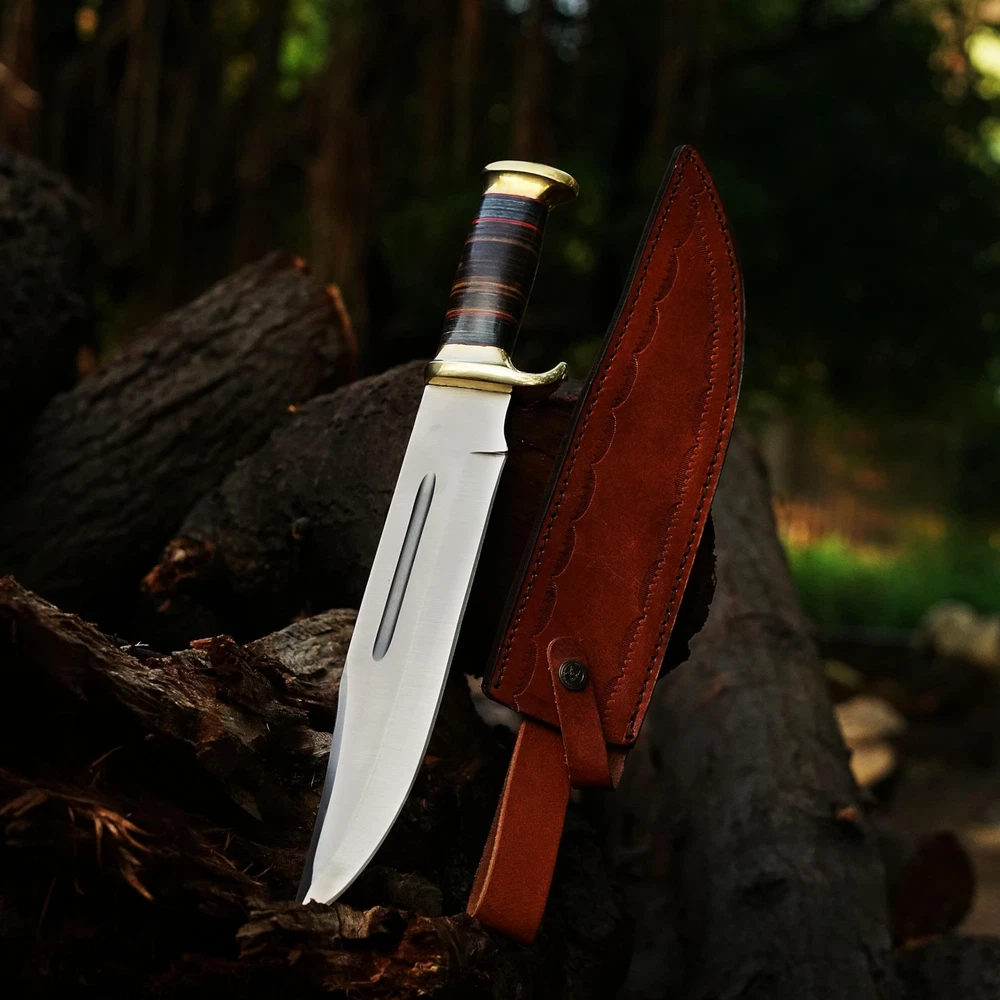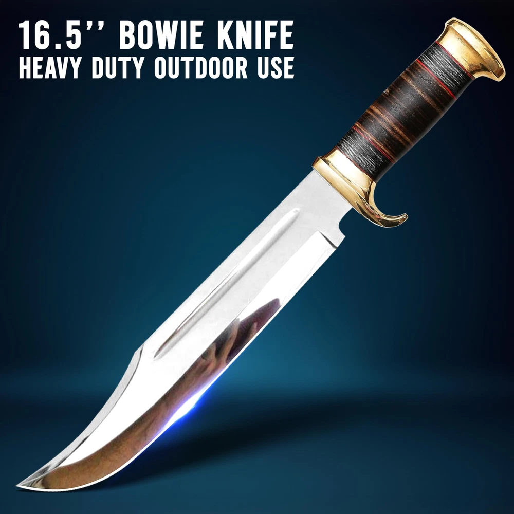 Perfect Hunting Knives For Outdoor Activities Our crocodile dundee knife With Sheath EDC knife has been Designed For Extraordinary Performance. This survival knife with a sheath Is All You Want. Incredibly Valuable For Hunting, Cleaning, Fishing, Setting Up Camp, Woodcutting, Climbing, Sports Games And Outside Endurance Requirements Fixed Blade Hunting knives Specification fixed blade knife Overall Length Of 16.5 Inches; Blade Length Of 11 Inches; Handle Length 5.5 Inches; Knife Weight 950 Grams. Bowie Knives Handle Material The Pakkawood And Leather Handle Of The Bowie Knife With Sheath Is Handmade And Non-Slip. The Pakkawood Handle Is Textured For Adding Grip And Less Slip While Working. The Whole Material Of The Handle Is Natural. Fixed Blade Knives With Sheath The Pure Leather Sheath Of This Amazing Professional Large Knife Is Made Of Prime Quality Thick Cow Skin To Ensure Excellent Manufacture. The Durable Double Stitching With Strong Thick Threads, In Combination With The Elegant, Standard Leather Knife Sheaths Host Your Precious Small Fixed-blade full tang knife Buy With Confidence We Take Pride In Our Hunting Knives With Sheaths And Back Them With A Reliable Policy. Care A Hunting Knife Is Made From Stainless Steel So To Prevent Corrosion Apply Oil After Using The Camping Knife. Package Includes 1 X Bowie Knife With Pakkawood/Leather Handle 1 X Knife With A Sheath For Belt ✅[HUNTING KNIVES FOR MEN SPECIFICATION]: Fixed Blade Hunting Knife With Sheath Overall Length Of 16.5 Inches; Blade Length Of 11 Inches Handle Length Of 5.5 Inches ✅[PREMIUM COMPOSITION] Bowie Knife Full Tang Handle Crafted With Leather And Pakkawood, Ensuring A Comfortable Grip. High-quality Stainless Steel For Exceptional Strength, Edge Retention, And Corrosion Resistance. ✅[KNIFE WITH LEATHER SHEATH] Our Fixed Blade Bowie Knife Comes With A Genuine Leather Sheath, Providing Superior Protection Against The Elements And Ensuring Safe And Convenient Carrying During Outdoor Excursions ✅[USAGE AND APPLICATIONS]: Designed For Hunting, Survival, Camping, Bushcrafting And Other Outdoor Tasks, This Razor Sharp Bowie Knife Is Suitable For Any Use. Its Razor-sharp Edge Make It An Essential Tool For Wilderness Exploration Trips. ✅[Best Gift] Bowie Knife A Timeless And Versatile Tool For Outdoor Enthusiasts And Collectors, Perfect For Birthdays, Anniversaries, Christmas, Wedding, Graduations, And Holiday Celebrations.