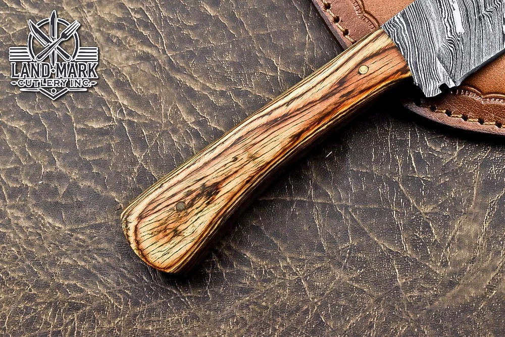 Custom Hand Made DAMASCUS STEEL HUNTING KNIFE WITH WOOD HANDLE We offer a shipping discount for More then one purchased . And discount will be apply on combine invoice, Discount will not apply on separate payment. ITEM DETAILS OVER ALL LENGTH 8.0 inches long (Approx) HANDLE LENGTH 4.0 inches long (Approx) BLADE LENGTH 4.0 inches long (Approx) BLADE HARDNESS 58-60 HRC Which Holds The Sharp Edge For Long Time. HANDLE WOOD COVER LEATHER SHEATH This Awesome custom made KNIFE has a nice hand forged with the combination of 4340 & 1080 steel. HOW OUR DAMASCUS IS MADE: All our Damascus is real and not just an acid etch. Damascus is a mixture of 1080HC and 4340 nickel carbon. You heat them up together and then fold the bar over and over to get the desired layers, ours are 396 layers. Then you burn the blade in acid, and it turns the nickel satin color and the high carbon turns blackish gray. This is how the layers are exposed to show the layers of the new steel created coined "Damascus". All Damascus is acid etched to show the layers. If you high polish the metal it will be shinny satin like all steels. Only after you burn the sides of the blade with acid do you see the layers of the two steels. Makes sense? After we make our knives we high polish the handles and put an edge on the blade. The high polishing buffs off the acid burned layer of the handle, and the blade edge is sharpened and the acid burned edge becomes satin. You can re-burn the tang of the blade near the handles and the edge of the blade and it will show the layers once more. All our knives are hand made, durable and unique ***** YOU WILL RECEIVED THE SAME KNIFE Qality Standards Our Damascus blades are made from high quality non-stainless steels which rival or exceed any Damascus blade made from the 10 series with 4340. Our Damascus combination has taken years to perfect and has been tested under a variety of application which will offer professional performance in categories of toughness, strength (lateral stress) and edge honing and holding ability. In a 5 spot Rockwell test our blades will average near or close to 58 which offers a perfect balances between its toughness and strength.Our blades due to carbon content need to be regularly treated with wax and/or 3 in 1 oil to maintain its superior quality. Questions if you have any question feel free to send us message we aim to answer all questions within 24 hours Feedback If you are not satisfied with our service please contact us before leaving any negative or natural feedback. We will resolve all issues as quickly as possible. Disclaimer We are not responsible for any injuries associated with the use of our tools. Our products are intended for legal use only by responsible buyers. Therefore, we will not sell our products to anyone under the age of 18. Before bidding please check your country laws as some countries Custom don't allow this. If your purchase is held by Custom Authorities in your country/State we will not be responsible for that and no refund will be issued Shipping We offer a 20% shipping discount for More then one purchased . And discount will be apply on combine invoice, Discount will not apply on separate payment We ship within 24 hours after receiving complete payment but this can be delayed due to week ends or Governments and Religious Festivals . . This is beyond our control and we apologize for this inconvenience. Precautions Our Tools are very sharp so open and use them very carefully We are not responsible for any injuries associated with the use of our tools Tips to Care knife 1. NEVER STORE YOUR KNIFE FOR LONG TIME IN LEATHER SHEATH. 2. LEATHER CAN ABSORB WATER, WHICH WILL RUST THE KNIFE. 3. ALWAYS CLEAN THE BLADE AFTER USING WITH OIL OR WAX