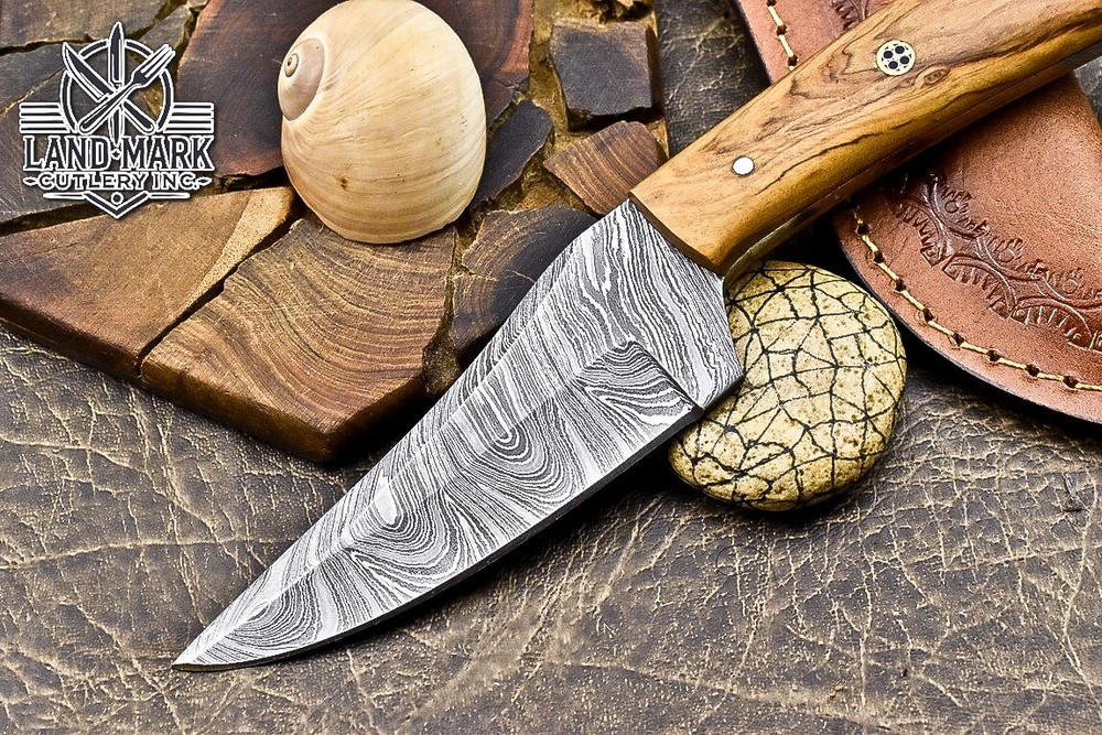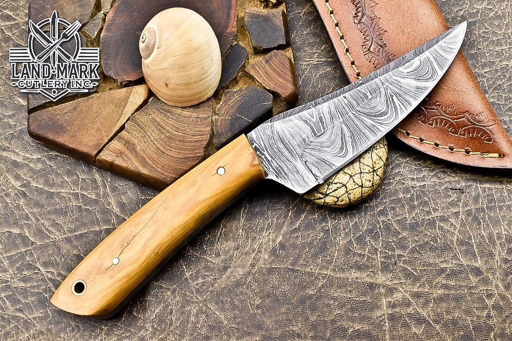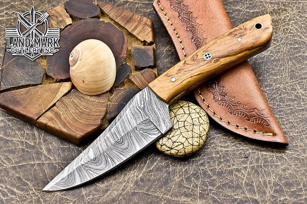 Custom Hand Made DAMASCUS STEEL HUNTING KNIFE WITH OLIVE WOOD HANDLE We offer a shipping discount for More then one purchased . And discount will be apply on combine invoice, Discount will not apply on separate payment. ITEM DETAILS OVER ALL LENGTH 8.0 inches long (Approx) HANDLE LENGTH 4.0 inches long (Approx) BLADE LENGTH 4.0 inches long (Approx) BLADE HARDNESS 58-60 HRC Which Holds The Sharp Edge For Long Time. HANDLE OLIVE WOOD COVER LEATHER SHEATH This Awesome custom made KNIFE has a nice hand forged with the combination of 4340 & 1080 steel. HOW OUR DAMASCUS IS MADE: All our Damascus is real and not just an acid etch. Damascus is a mixture of 1080HC and 4340 nickel carbon. You heat them up together and then fold the bar over and over to get the desired layers, ours are 396 layers. Then you burn the blade in acid, and it turns the nickel satin color and the high carbon turns blackish gray. This is how the layers are exposed to show the layers of the new steel created coined "Damascus". All Damascus is acid etched to show the layers. If you high polish the metal it will be shinny satin like all steels. Only after you burn the sides of the blade with acid do you see the layers of the two steels. Makes sense? After we make our knives we high polish the handles and put an edge on the blade. The high polishing buffs off the acid burned layer of the handle, and the blade edge is sharpened and the acid burned edge becomes satin. You can re-burn the tang of the blade near the handles and the edge of the blade and it will show the layers once more. All our knives are hand made, durable and unique ***** YOU WILL RECEIVED THE SAME KNIFE Qality Standards Our Damascus blades are made from high quality non-stainless steels which rival or exceed any Damascus blade made from the 10 series with 4340. Our Damascus combination has taken years to perfect and has been tested under a variety of application which will offer professional performance in categories of toughness, strength (lateral stress) and edge honing and holding ability. In a 5 spot Rockwell test our blades will average near or close to 58 which offers a perfect balances between its toughness and strength.Our blades due to carbon content need to be regularly treated with wax and/or 3 in 1 oil to maintain its superior quality. Questions if you have any question feel free to send us message we aim to answer all questions within 24 hours Feedback If you are not satisfied with our service please contact us before leaving any negative or natural feedback. We will resolve all issues as quickly as possible. Disclaimer We are not responsible for any injuries associated with the use of our tools. Our products are intended for legal use only by responsible buyers. Therefore, we will not sell our products to anyone under the age of 18. Before bidding please check your country laws as some countries Custom don't allow this. If your purchase is held by Custom Authorities in your country/State we will not be responsible for that and no refund will be issued Shipping We offer a 20% shipping discount for More then one purchased . And discount will be apply on combine invoice, Discount will not apply on separate payment We ship within 24 hours after receiving complete payment but this can be delayed due to week ends or Governments and Religious Festivals . . This is beyond our control and we apologize for this inconvenience. Precautions Our Tools are very sharp so open and use them very carefully We are not responsible for any injuries associated with the use of our tools Tips to Care knife 1. NEVER STORE YOUR KNIFE FOR LONG TIME IN LEATHER SHEATH. 2. LEATHER CAN ABSORB WATER, WHICH WILL RUST THE KNIFE. 3. ALWAYS CLEAN THE BLADE AFTER USING WITH OIL OR WAX