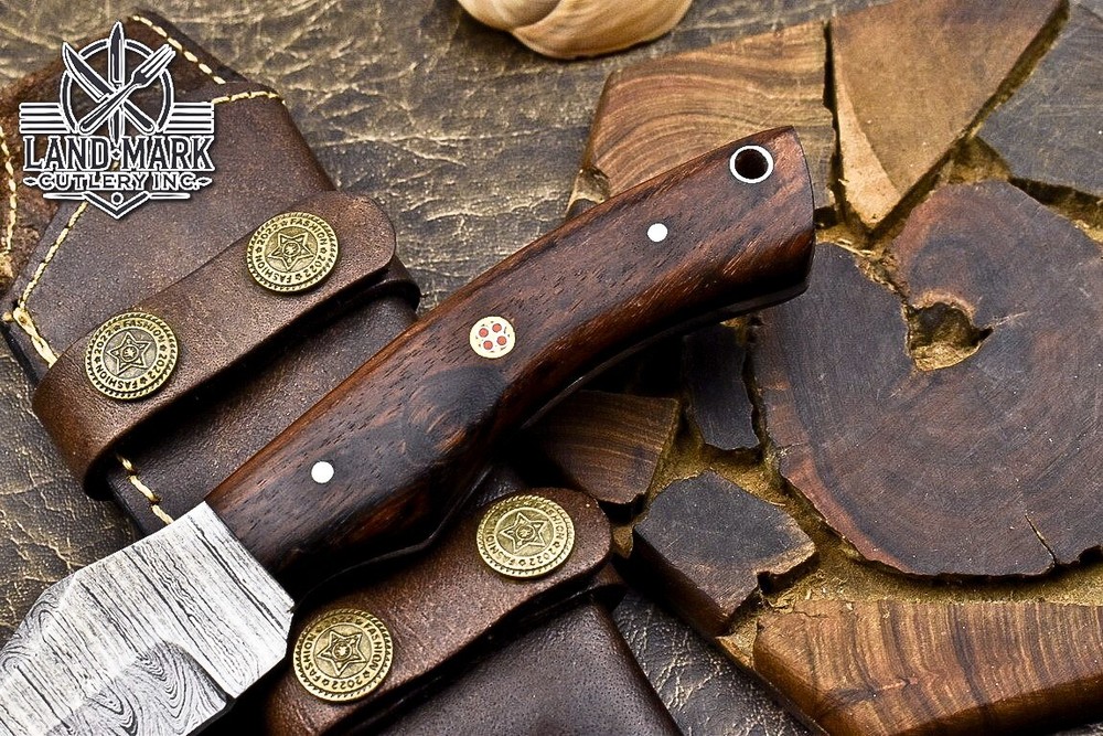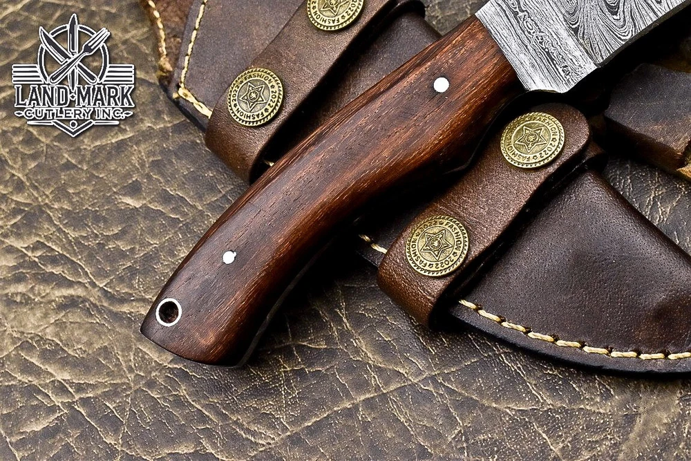 Custom Hand Made DAMASCUS STEEL HUNTING KNIFE WITH ROSE WOOD HANDLE We offer a shipping discount for More then one purchased . And discount will be apply on combine invoice, Discount will not apply on separate payment. ITEM DETAILS OVER ALL LENGTH 8.0 inches long (Approx) HANDLE LENGTH 4.0 inches long (Approx) BLADE LENGTH 4.0 inches long (Approx) BLADE HARDNESS 58-60 HRC Which Holds The Sharp Edge For Long Time. HANDLE ROSE WOOD COVER LEATHER SHEATH This Awesome custom made KNIFE has a nice hand forged with the combination of 4340 & 1080 steel. HOW OUR DAMASCUS IS MADE: All our Damascus is real and not just an acid etch. Damascus is a mixture of 1080HC and 4340 nickel carbon. You heat them up together and then fold the bar over and over to get the desired layers, ours are 396 layers. Then you burn the blade in acid, and it turns the nickel satin color and the high carbon turns blackish gray. This is how the layers are exposed to show the layers of the new steel created coined "Damascus". All Damascus is acid etched to show the layers. If you high polish the metal it will be shinny satin like all steels. Only after you burn the sides of the blade with acid do you see the layers of the two steels. Makes sense? After we make our knives we high polish the handles and put an edge on the blade. The high polishing buffs off the acid burned layer of the handle, and the blade edge is sharpened and the acid burned edge becomes satin. You can re-burn the tang of the blade near the handles and the edge of the blade and it will show the layers once more. All our knives are hand made, durable and unique ***** YOU WILL RECEIVED THE SAME KNIFE Qality Standards Our Damascus blades are made from high quality non-stainless steels which rival or exceed any Damascus blade made from the 10 series with 4340. Our Damascus combination has taken years to perfect and has been tested under a variety of application which will offer professional performance in categories of toughness, strength (lateral stress) and edge honing and holding ability. In a 5 spot Rockwell test our blades will average near or close to 58 which offers a perfect balances between its toughness and strength.Our blades due to carbon content need to be regularly treated with wax and/or 3 in 1 oil to maintain its superior quality. Questions if you have any question feel free to send us message we aim to answer all questions within 24 hours Feedback If you are not satisfied with our service please contact us before leaving any negative or natural feedback. We will resolve all issues as quickly as possible. Disclaimer We are not responsible for any injuries associated with the use of our tools. Our products are intended for legal use only by responsible buyers. Therefore, we will not sell our products to anyone under the age of 18. Before bidding please check your country laws as some countries Custom don't allow this. If your purchase is held by Custom Authorities in your country/State we will not be responsible for that and no refund will be issued Shipping We offer a 20% shipping discount for More then one purchased . And discount will be apply on combine invoice, Discount will not apply on separate payment We ship within 24 hours after receiving complete payment but this can be delayed due to week ends or Governments and Religious Festivals . . This is beyond our control and we apologize for this inconvenience. Precautions Our Tools are very sharp so open and use them very carefully We are not responsible for any injuries associated with the use of our tools Tips to Care knife 1. NEVER STORE YOUR KNIFE FOR LONG TIME IN LEATHER SHEATH. 2. LEATHER CAN ABSORB WATER, WHICH WILL RUST THE KNIFE. 3. ALWAYS CLEAN THE BLADE AFTER USING WITH OIL OR WAX