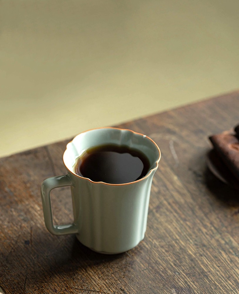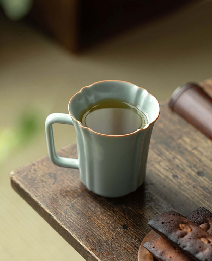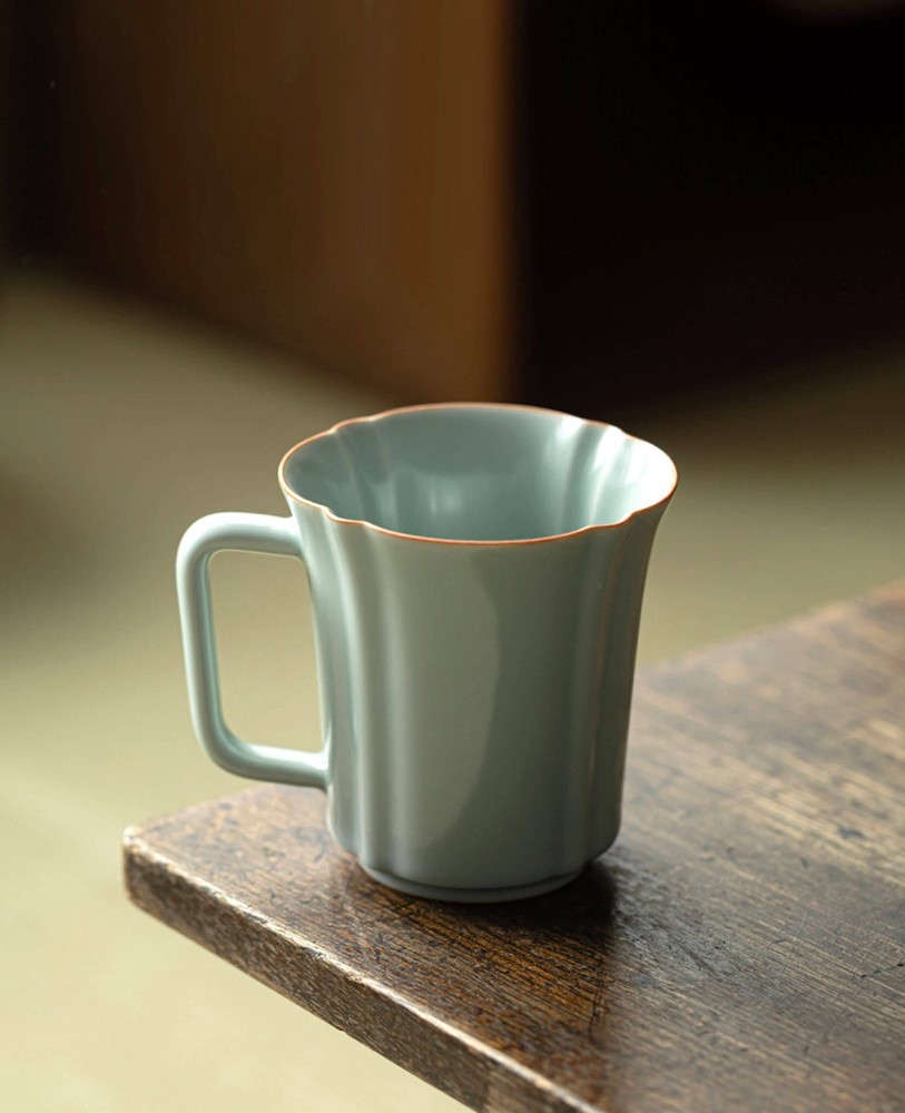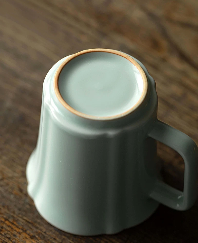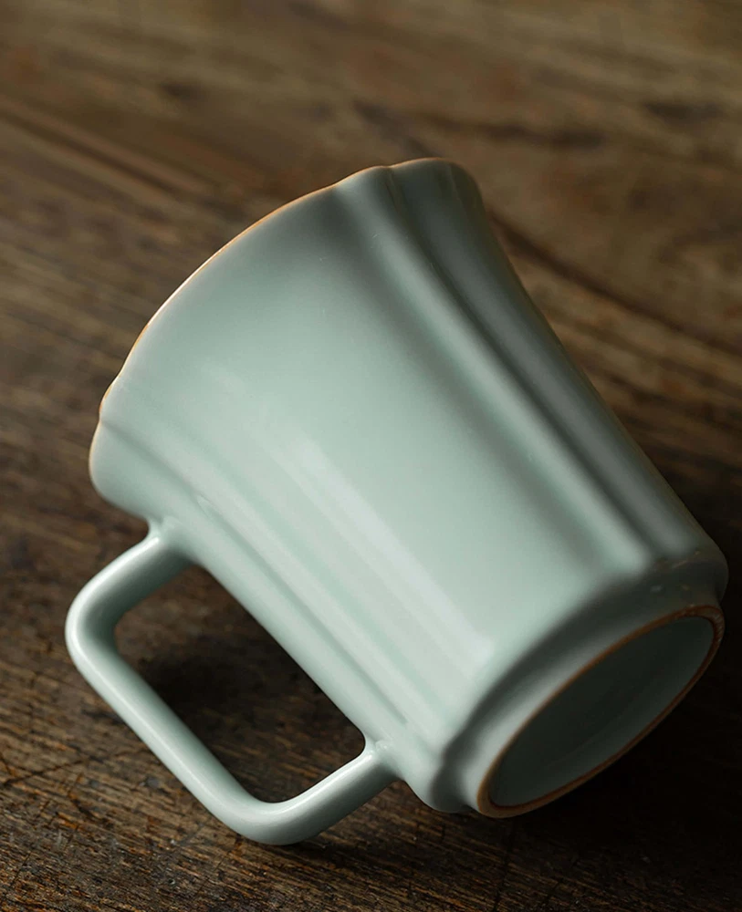 Echo of Ru - Handmade Porcelain Coffee & Tea Mug Porcelain Poem Collection - Ts & Cs A soft murmur of ancient elegance, Echo of Ru draws from the storied tradition of Ru ware - a treasured celadon glaze once reserved for emperors. Shaped with a gently scalloped rim and formed from fine porcelain, this handcrafted mug offers a quiet tribute to the serenity of Song Dynasty aesthetics. Its pale, translucent celadon glaze pools delicately in every curve, catching the light like still water. Whether you're brewing a grounding tea or a rich morning coffee, Echo of Ru transforms each sip into a moment of mindful beauty. Perfect for those who appreciate refined minimalism and soulful design, this mug is more than a vessel - it's a modern echo of timeless craftsmanship. Details: Includes: 1 mug Capacity: approx. 280 ml Finish: Ru ware glossy glaze Material: Porcelain Texture: Smooth Microwave and dishwasher safe Dimensions: Mug diameter: approx 9.4 cm Mug height: approx 9.7 cm Weight: approx 0.4 kg Click here to explore our full collection. Ts & Cs, Your Tea & Coffee Treasury.