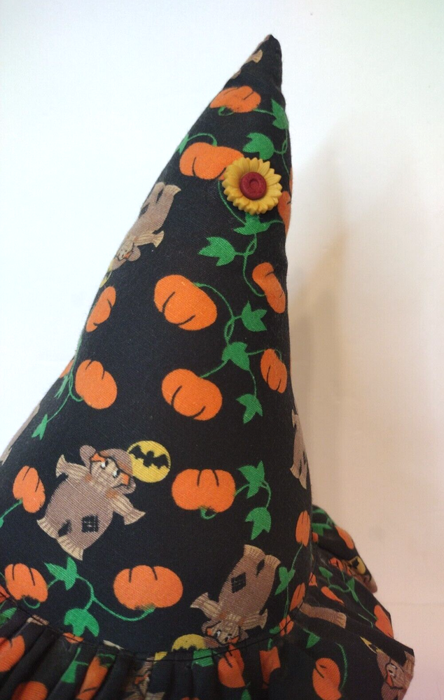 This adorable shelf sitter measures approximately 13" in height and 25.5" in circumference at its thickest. The hat has little scarecrows on it and a little sunflower attached to the top of the hat. Please see all photographs as they are part of the description. Shipped with USPS Ground Mail. X17