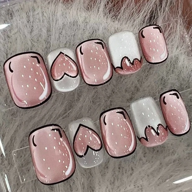 Suitable For: Nail Art Color: Pink Brand: Unbranded Type: Press-On Nails Features: Full Cover, Glue Included, Self-Adhesive Theme: Heart Country/Region of Manufacture: China Effect: Shimmer Shape: Coffin Nail Size: Short
