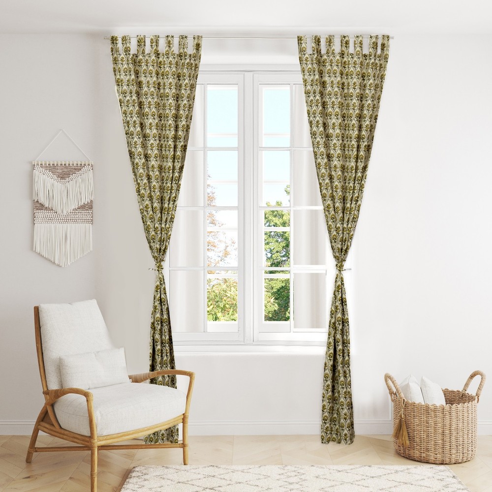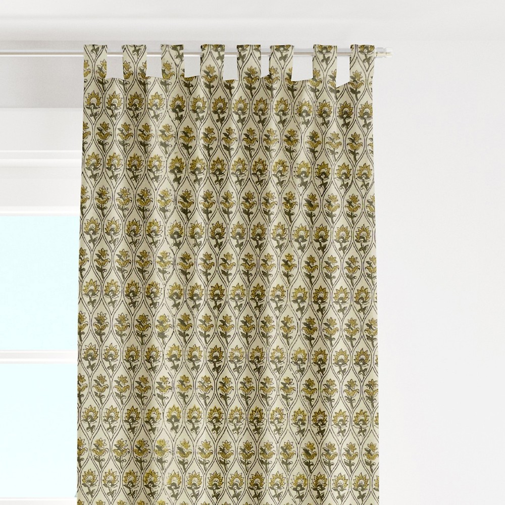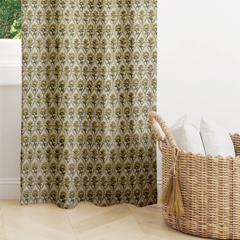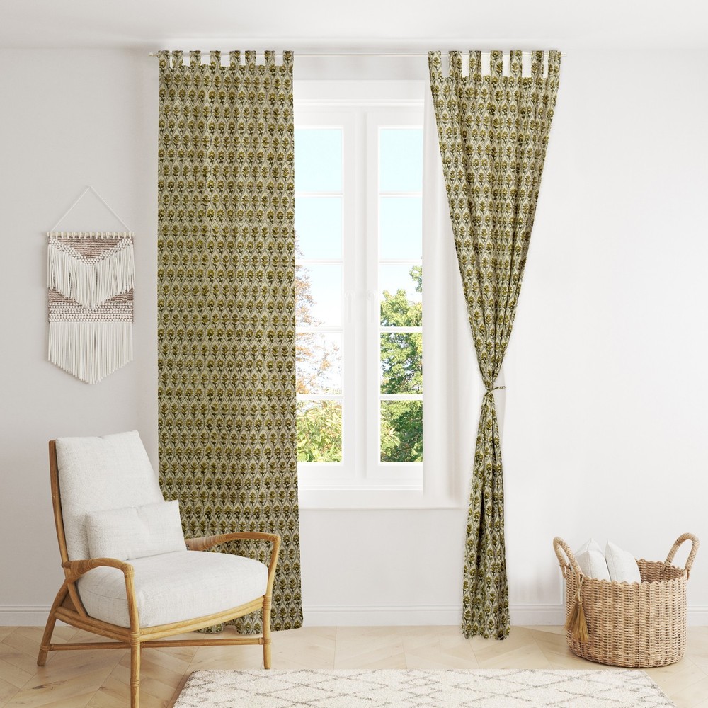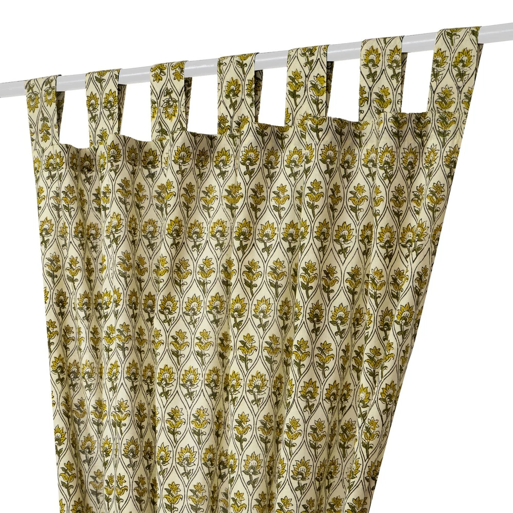 Handmade Indian Cotton Curtains Floral Block Print Window Panels