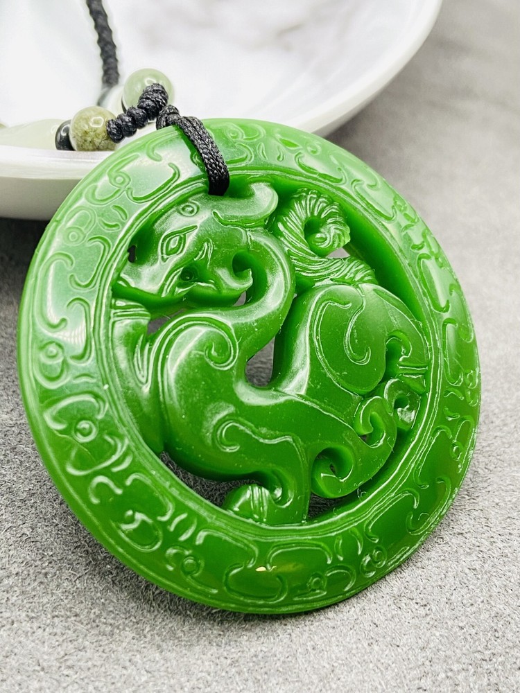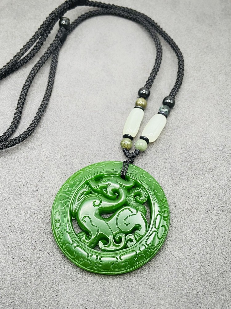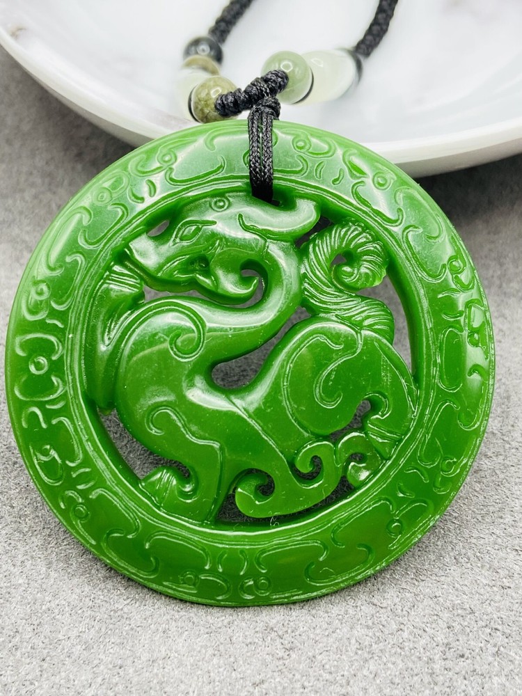 Stone: Jade Pendant Measurements: 2 inch X 2 inch Necklace Length: 26 inch ( Adjustable Length ) Weight : 20 g Package Included: Pendant & Necklace
