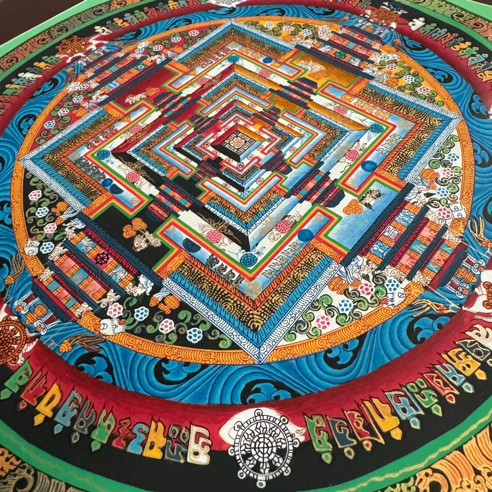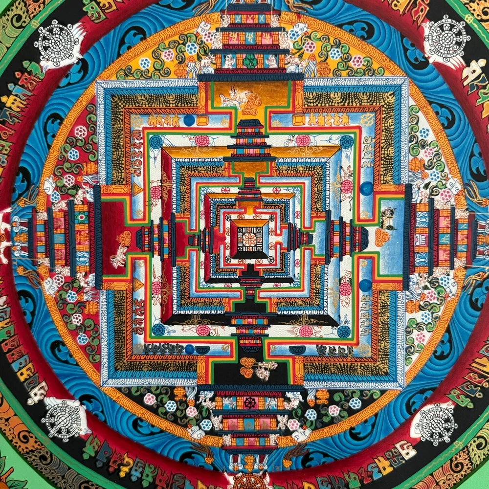 Namaste and Welcome to my Gallery!!! All of the paintings and arts in my gallery are originally handmade and hand-painted by my family members and other local artists who have been practicing their craft for over two decades. My father is Master Artists Nepal with an experience of more than four decades; you can see some of his work in this Gallery. Also you can see some of the beautiful and soulful artwork of talented local artists from Himalayas. ~~Kalachakra Mandala Thangka~~ Kalachakra Mandala is a Sanskrit word for “wheel of time”. The mandala of kalachakra is aerial view of the kalachakra temple, situated in Lhasa and contains 722 Deities, and at its heart on a Lotus flower, a single Buddha: Kalachakra. It is a 5 level structure, each level is represented by a square, and each square is set within the others. In mandala there are six circles of elements: wisdom, space, wind, fire, water and earth. Then we get to different entrance of the body, speech and mind. [Size = 37cm x 37cm] Material Used: • Cotton Canvas • Natural Pigments and colors • Gold leaf ~Excellent for meditation or home/office decor, ~Tibetan Yoga Wall Art ~Genuine 100% hand-painted from Himalayas Please feel free to contact me if you have any question regarding the painting.