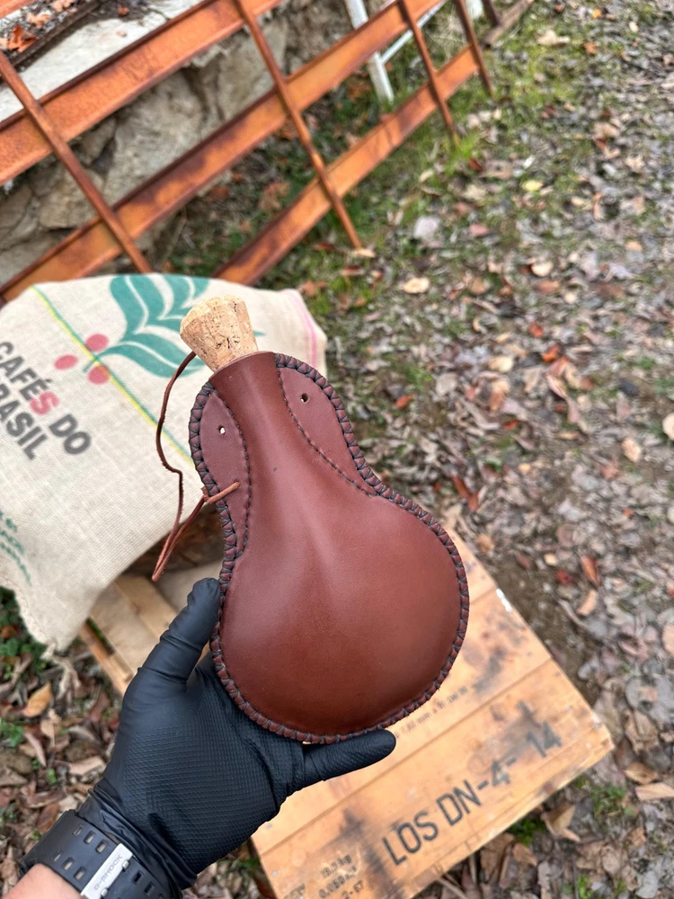 This is the highest quality leather water bottle you'll ever see, entirely handcrafted! Drinking from this water bottle will take you back in time! You'll travel back in time and enjoy your water even more! If you're looking for a quality leather water bottle that looks like it came straight from a movie set, you're looking for the right product. A great gift for nature enthusiasts and vintage enthusiasts! You could even wear this product to a costume party! Made from high-quality leather that you can pass down to your grandchildren, it's completely coated with natural beeswax. It's leak-proof! It holds a total of 700 ml of liquid. NOT SUITABLE FOR HOT DRINKS!