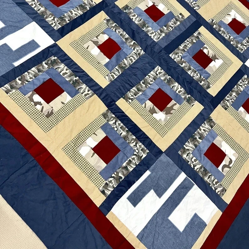Handmade Log Cabin Star Patchwork Queen size Quilt top/topper Sewing/Quilt craft This is not complete quilt , you need add batting and backing and do the quilting work. You can finish it as a quilt, as a shirt, as a skirt, anything within your creativity. This fun quilt topper has a variety of colors to go with. So classic. No Stains! Never been used. No prewash Measure: Around 86x86”+-3" 100 % cotton fabrics