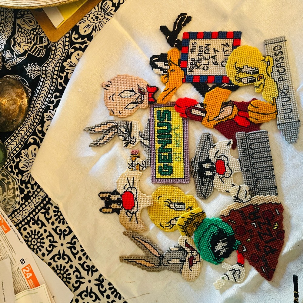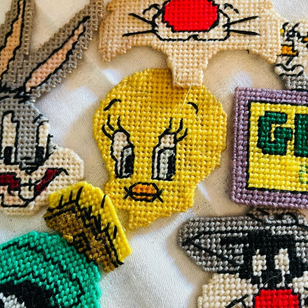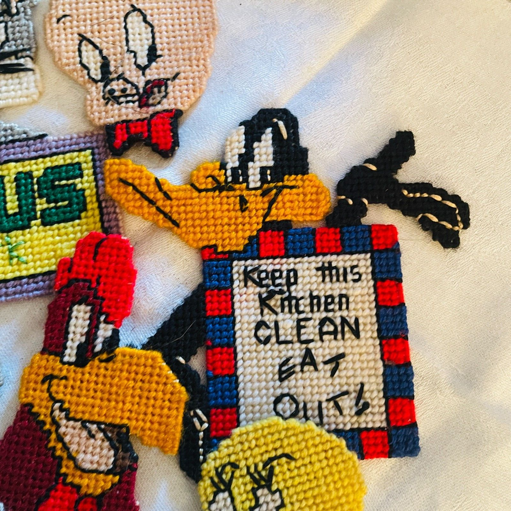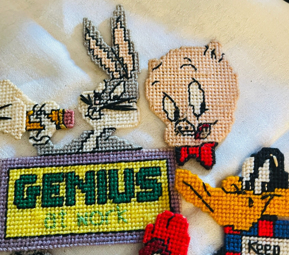 Handmade Looney Tunes Needlepoint Magnets Featuring Bugs Tweety Marvin Porky Granny Core Aesthetic