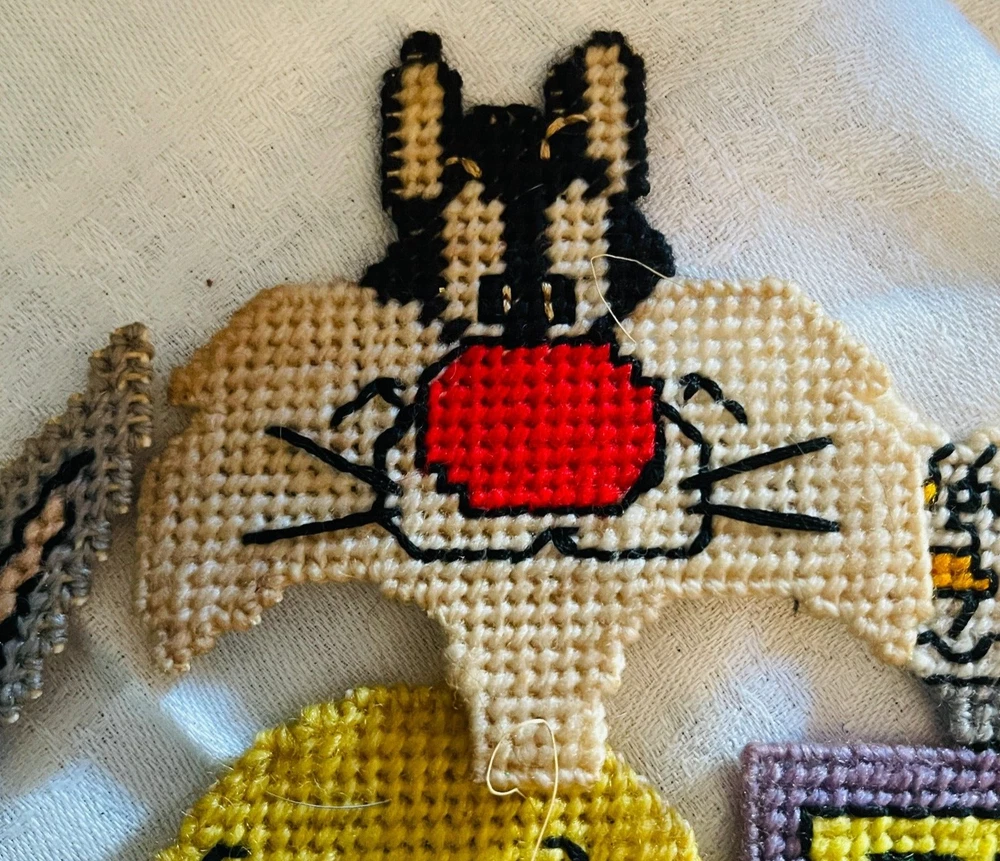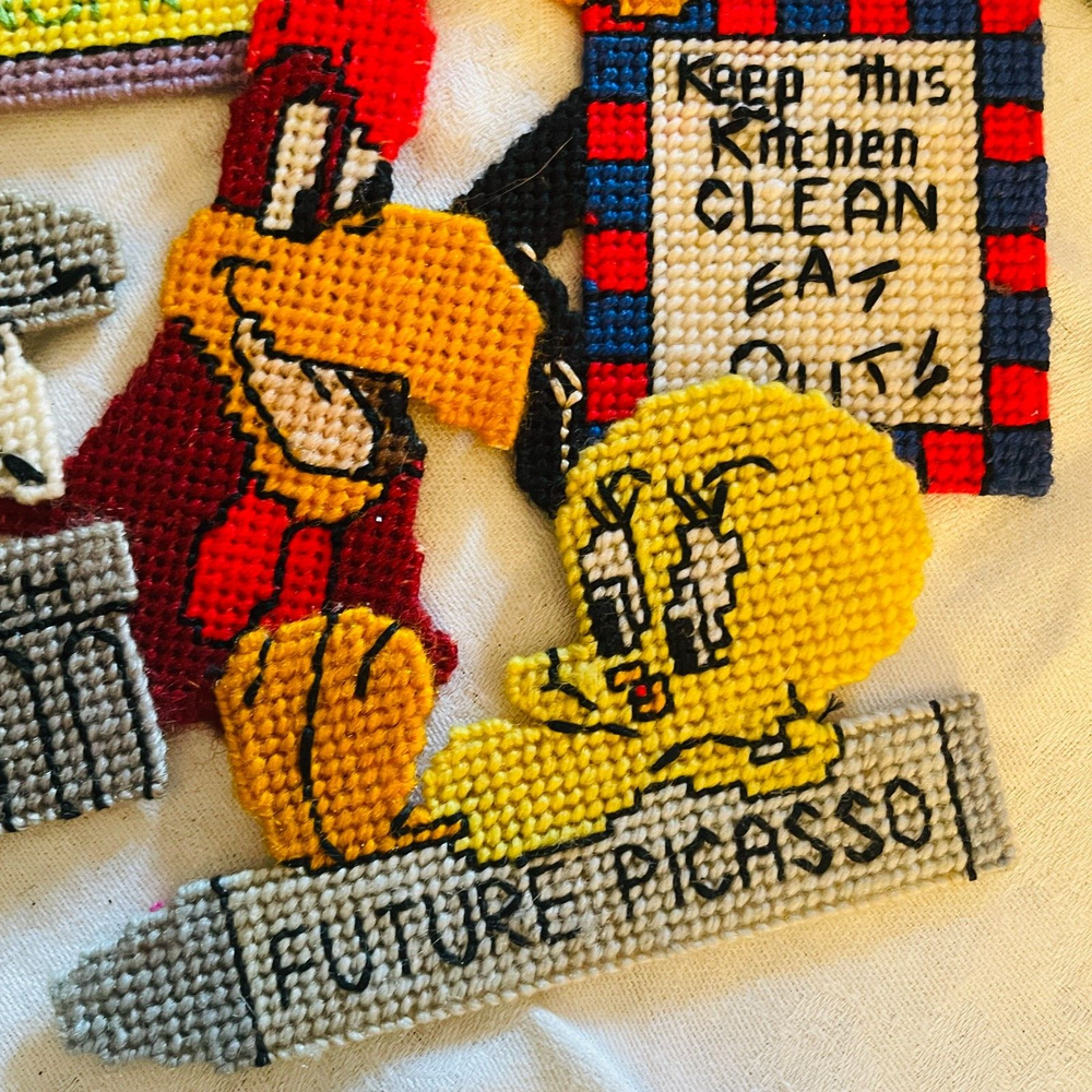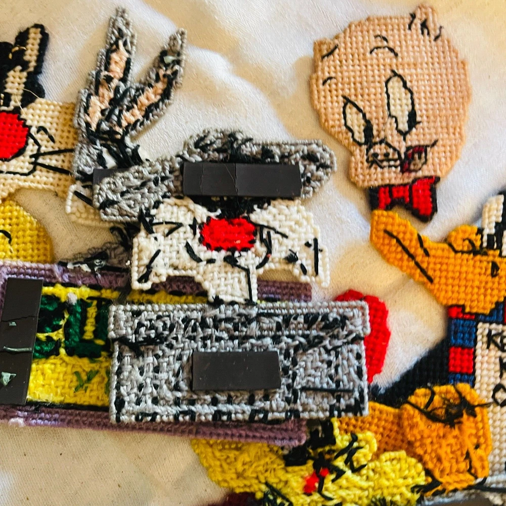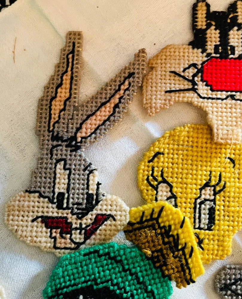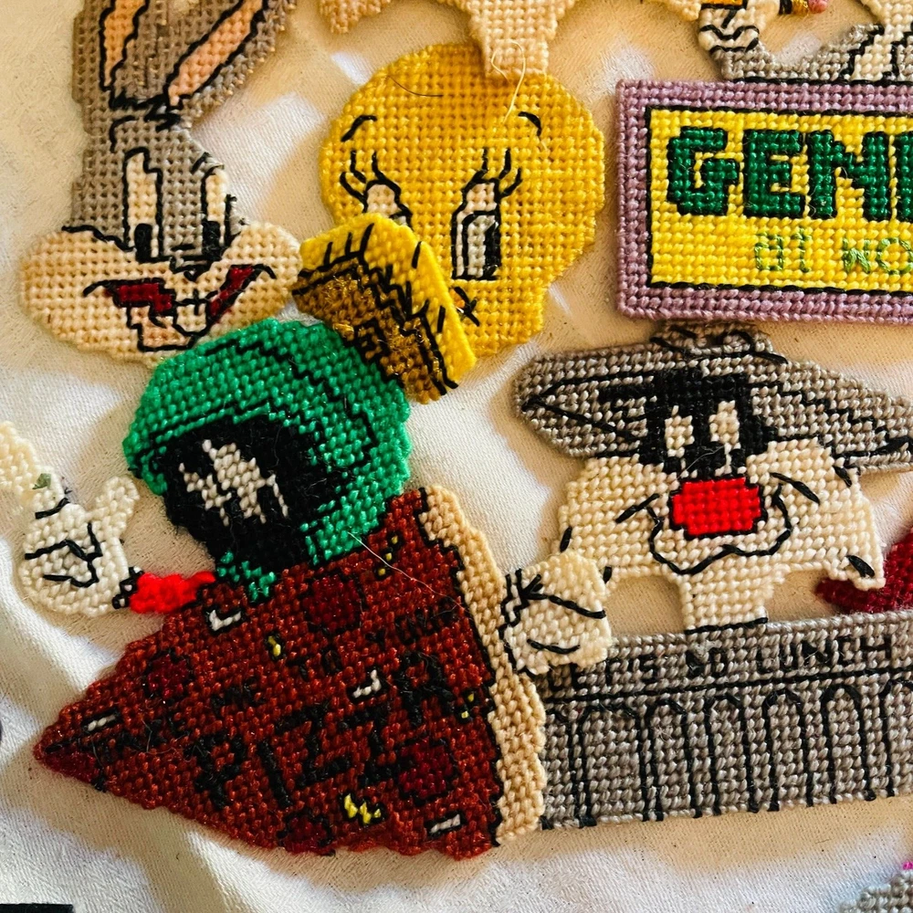 Handmade Looney Tunes Needlepoint Magnets Featuring Bugs Tweety Marvin Porky Granny Core Aesthetic
