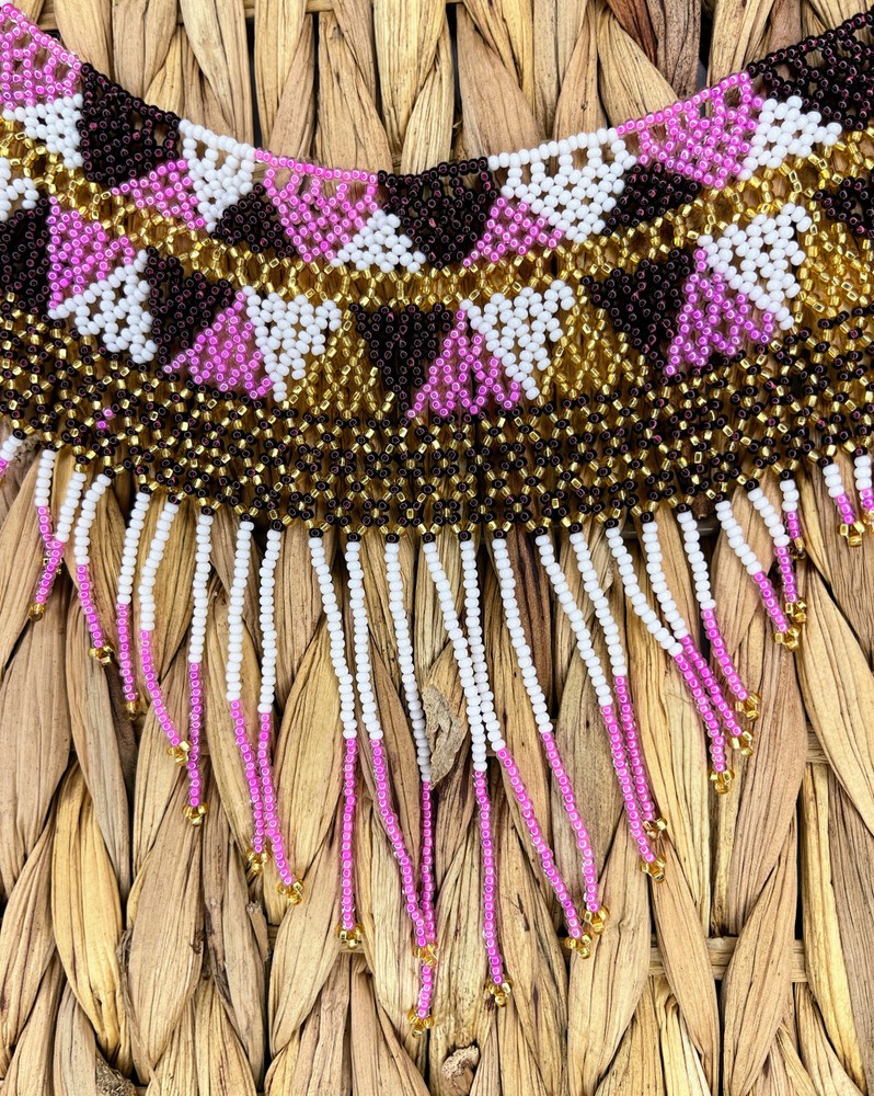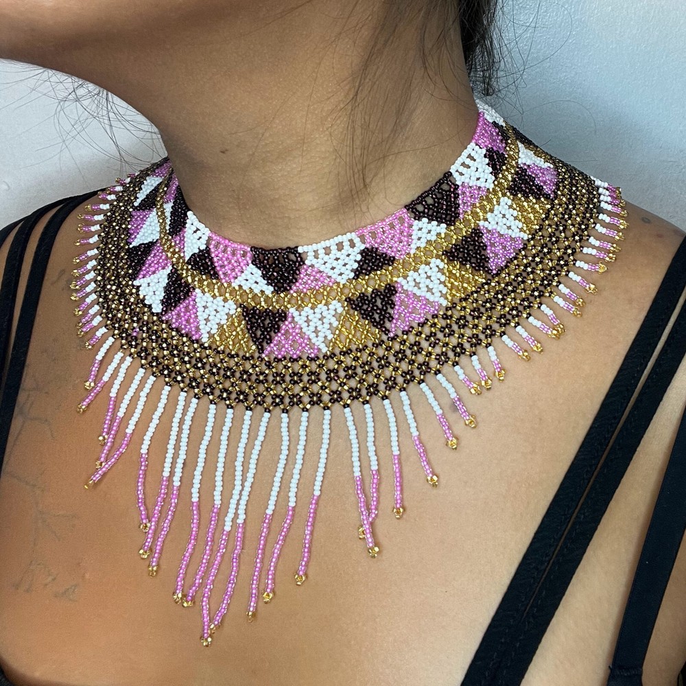 Handmade Mexican Aztec Beaded Choker Necklace 46cm