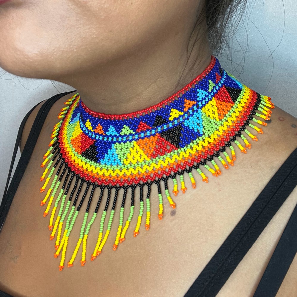 Handmade Mexican Aztec Beaded Choker Necklace 53
