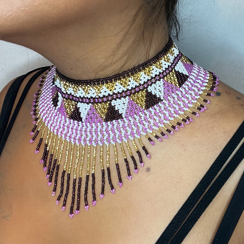 Handmade Mexican Aztec Beaded Choker Necklace