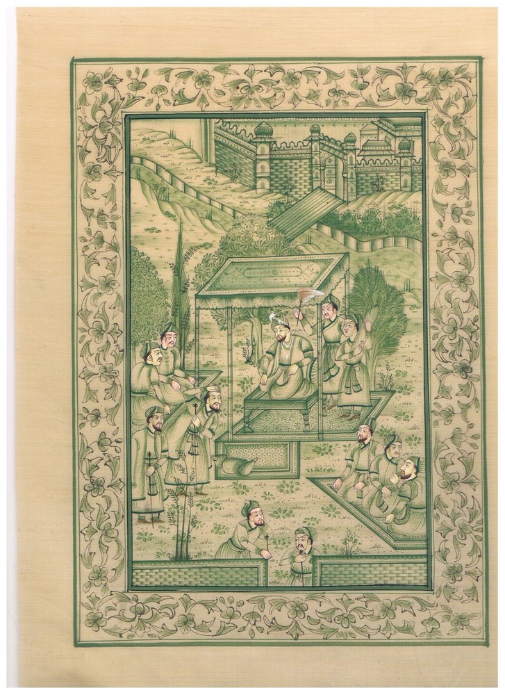 Handmade Mughal Miniature Painting Mughal Court Scene On Silk Cloth 9x12 Inches DESCRIPTION Painted using Squirrel hair brushes. Natural s tone colors used in painting. Million dots of colors can be seen by lens. Artist has painted this beautiful piece using the stone color and squirrel single hair brush. Ideology behind using stone colors is to give it a natural, lively and lifelong look. SHIPPING We will dispatch your order as per our handling time. NOTE :: This product does not include any import duty, Buyer will be responsible for the same in their respective country. Have a nice day