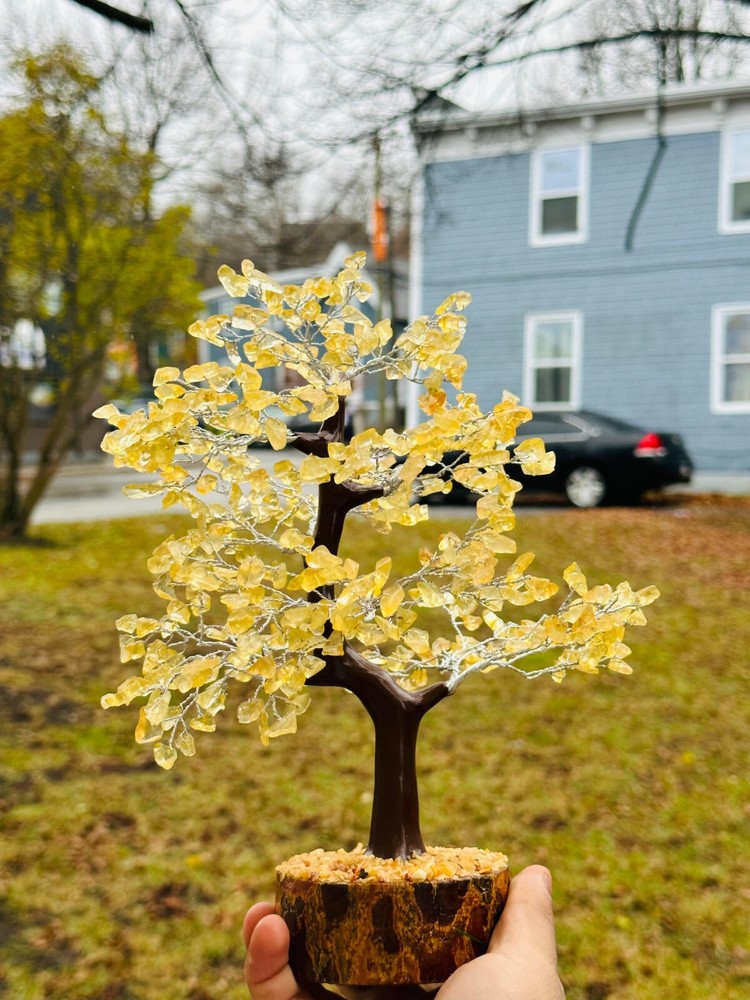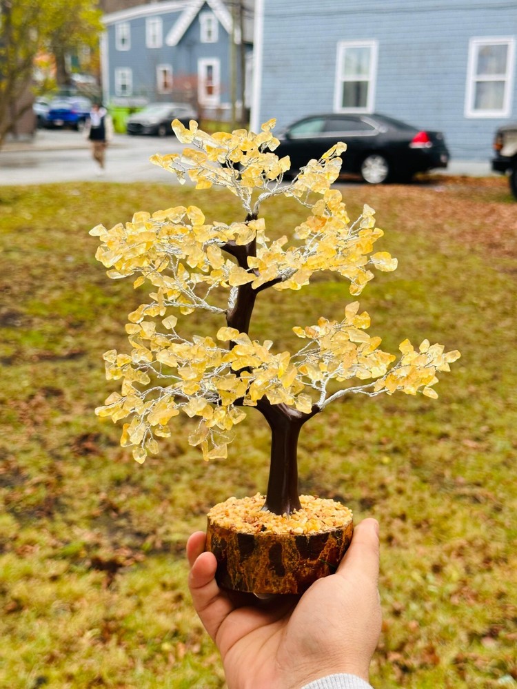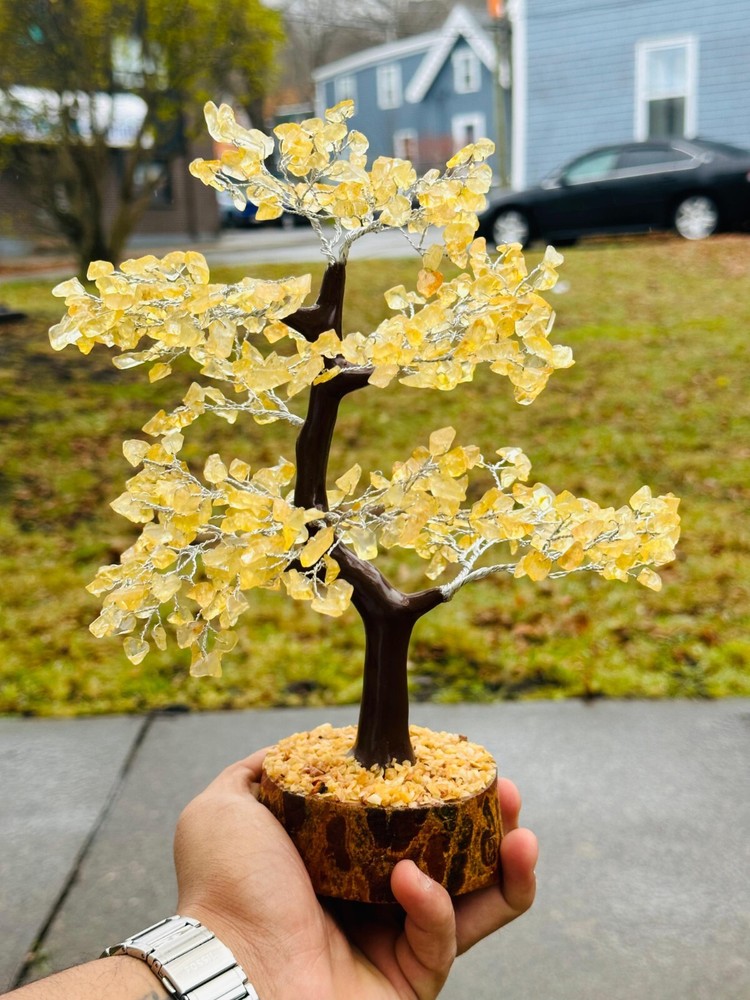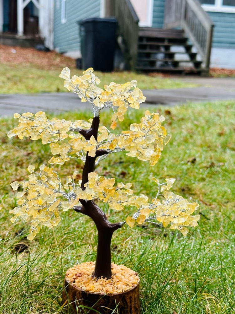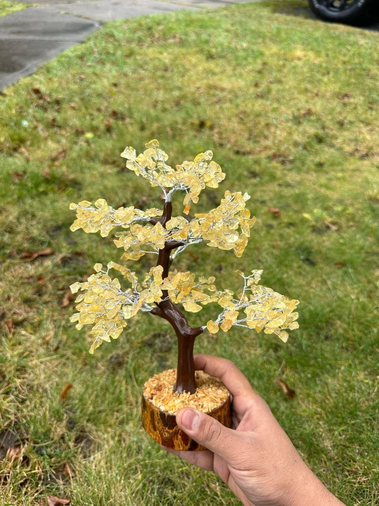 Handmade Natural Citrine Gemstone Bonsai Tree with 500 Chips for Abundance and Energy