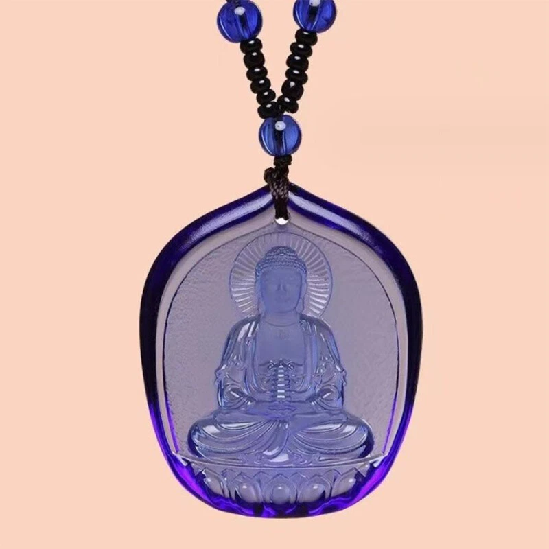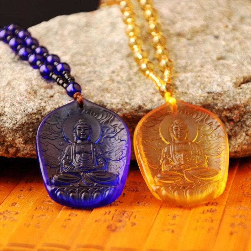 Description Name: drop-shaped pendant Material: glass Size: Pendant is about 5 cm, chain is about 65 cm in circumference Suitable for temple bonding, scenic sales, bonding gifts, etc.