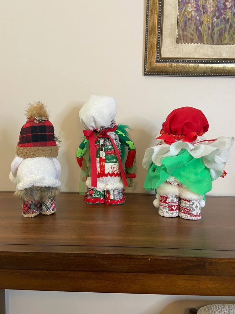 Discover this charming handmade Nordic Scandinavian gnome set of three, perfect for adding a delightful touch to your Christmas holiday decor. Each gnome features a unique candy-cane bakery accent, making them an irresistible addition to your festive celebrations! CONDITION: They are pre-owned but in good condition. See the attached photos. Color: Multicolor Style: Gnomes, Vintage-looking Materials: Miscellaneous Measurements: Approximately, father is 13 in H, mom is 10.5 in H, and the child is 10.5 in D. "All our items are sold as are." We are committed to ensuring you the best customer experience and affordable prices. Thank you for supporting our small business and contributing to a better and cleaner world.