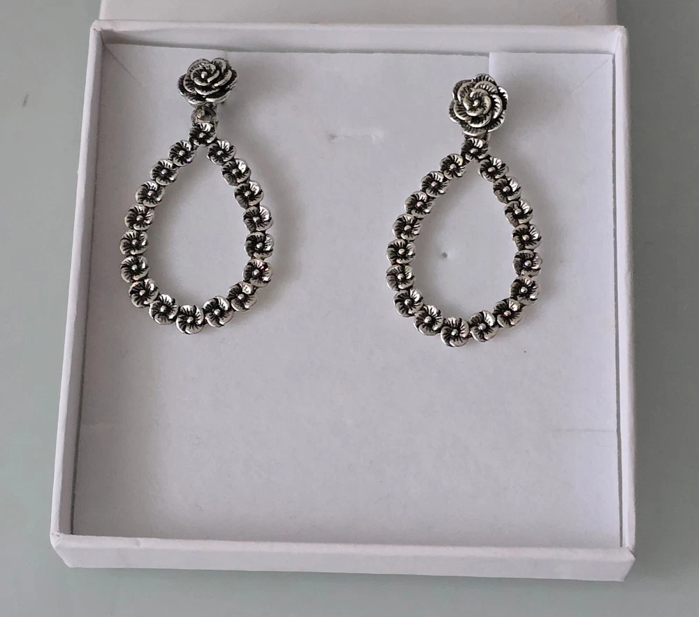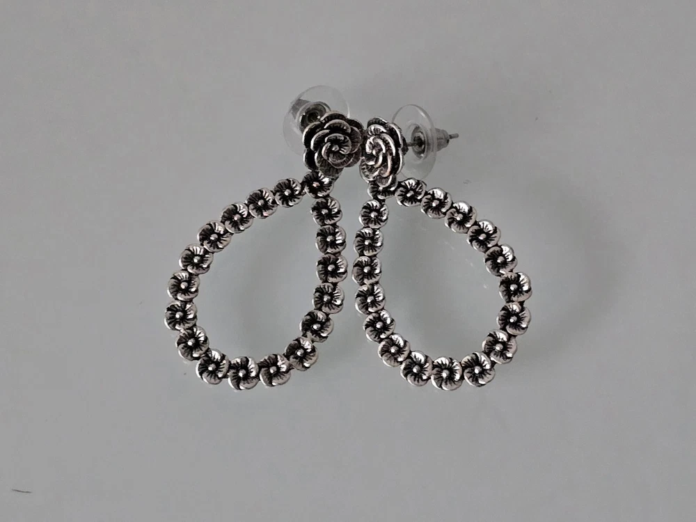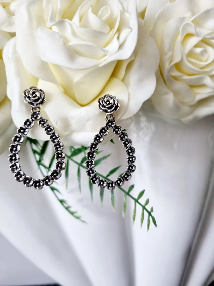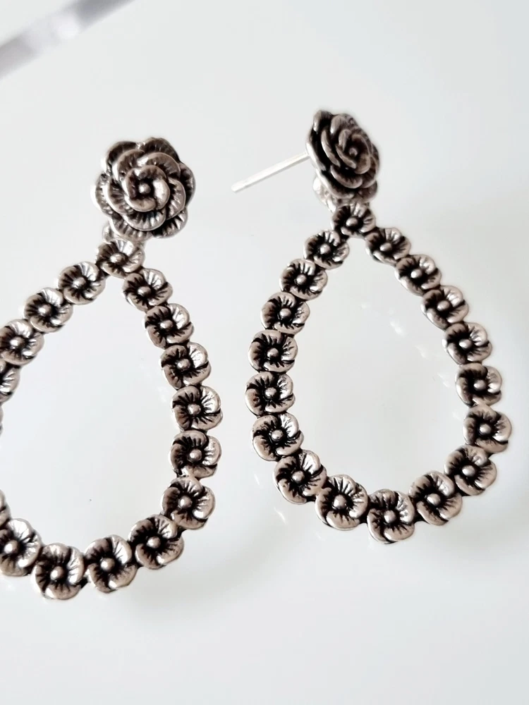 Vintage Handmade Oval Shape Sterling Silver Rose Flower Victorian Drop Earring These rare unique piece of earring is crafted from sterling silver and feature an ornate floral dangle. It has it's elegance and unique feel to it. Ideal for the perfect Lady. Suitable for all Occasion's.