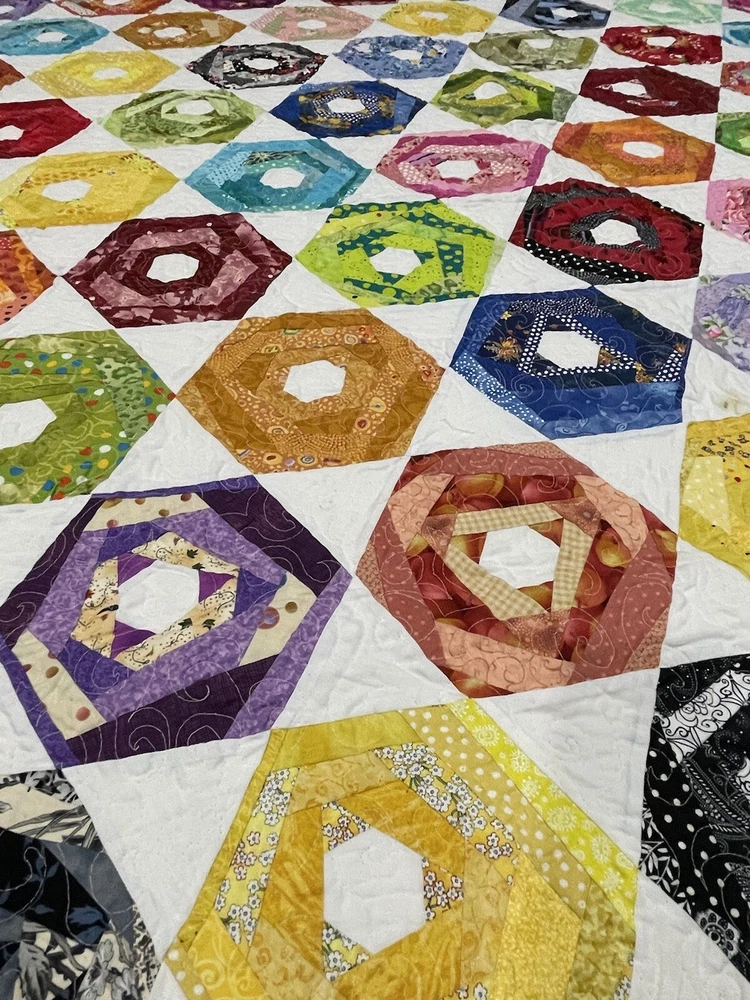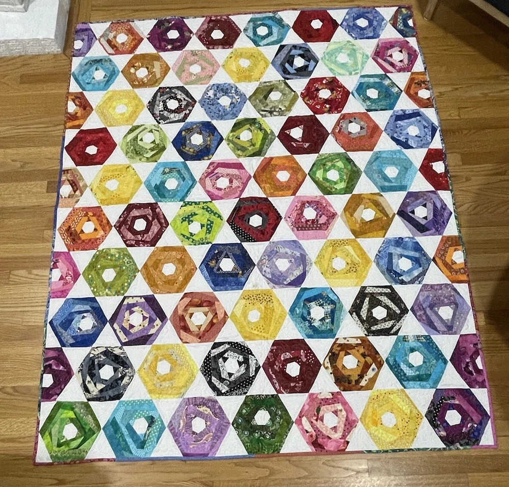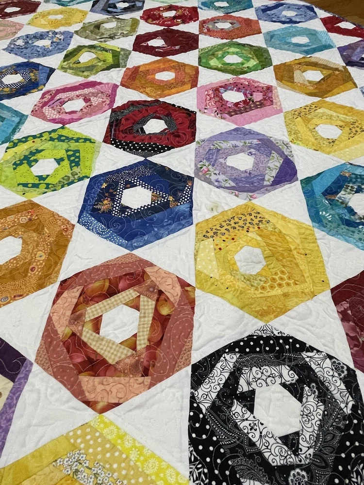 Handmade Quilt/Throw Multicolor Bright White 2-sided Hand Sewn Machine Quilted