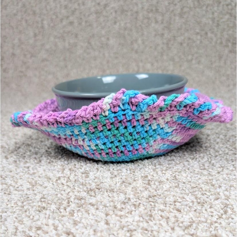 Handmade Reversible Crochet Bowl Cozy Hot Pad in Purple Blue Unique Design