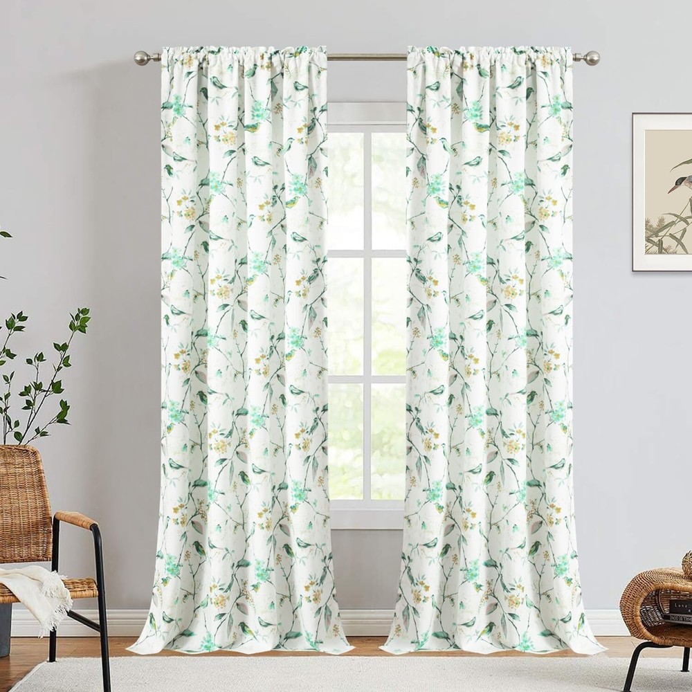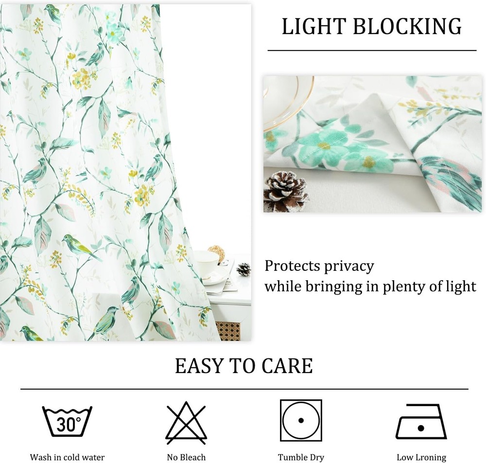 Seasons: Autumn, All Season Unit Count: 2.0 Count Transparency: Light Filtering Personalize: No Mounting: Wall Mounted Included Components: 2 Panels Department: Adults, Kids, Teens, Unisex Baby & Toddler Lining Description: Partially Lined Top Style: Rod Pocket Features: Indoors, Bird pattern, Thick fabric, Not see-through, Handmade, Wrinkle free, Light filtering, Machine washable Special Feature: Wrinkle Free, Washable Curtain Heading: Rod Pocket Room: Kitchen Opacity: Light-filtering Water Resistance Level: Not Water Resistant Type: Panels Compatible Window Type: Single Hung Window Size: 52 x 84 Fabric Type: 100% Polyester Material: Polyester Product Care Instructions: Machine Wash Recommended Uses For Product: Indoor Pattern: Bird Care Instructions: Machine Wash, Machine Wash Warm, Do Not Dryclean, Do Not Iron, Do Not Tumble Dry Item Weight: Medium UPC: Does not apply Product Dimensions: 84"l X 52"w Color: Green Smart Home Compatibility: No Length Range: 84 Hanging Method: Rod Pocket Package Weight: 1.76 Kilograms Compatible With Rod Size: 3 Inches Theme: Bird Width Range: 52 Style: Country Smart Home Protocol: No Adjustability: No Brand: Unbranded Curtain Form: Drapes Number Of Items: 2 gtin13: Does not apply