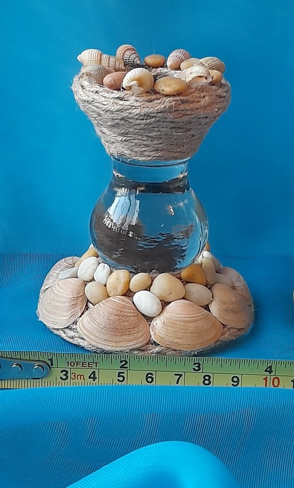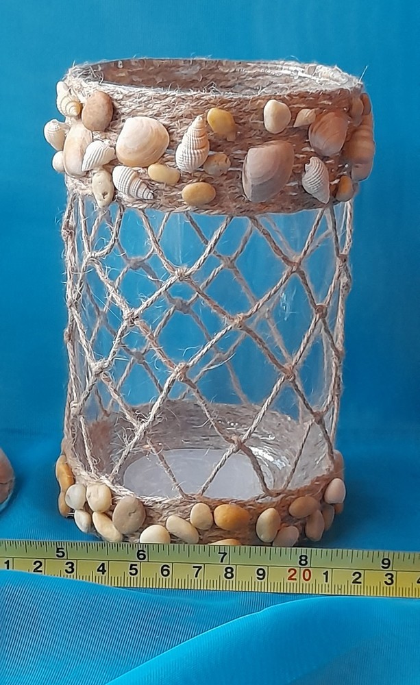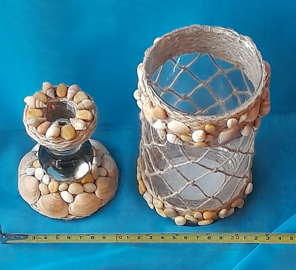 Set of 2: Handmade Decorative Vase and Tealight Candle Holder with Seashells – Coastal Beach Decor
